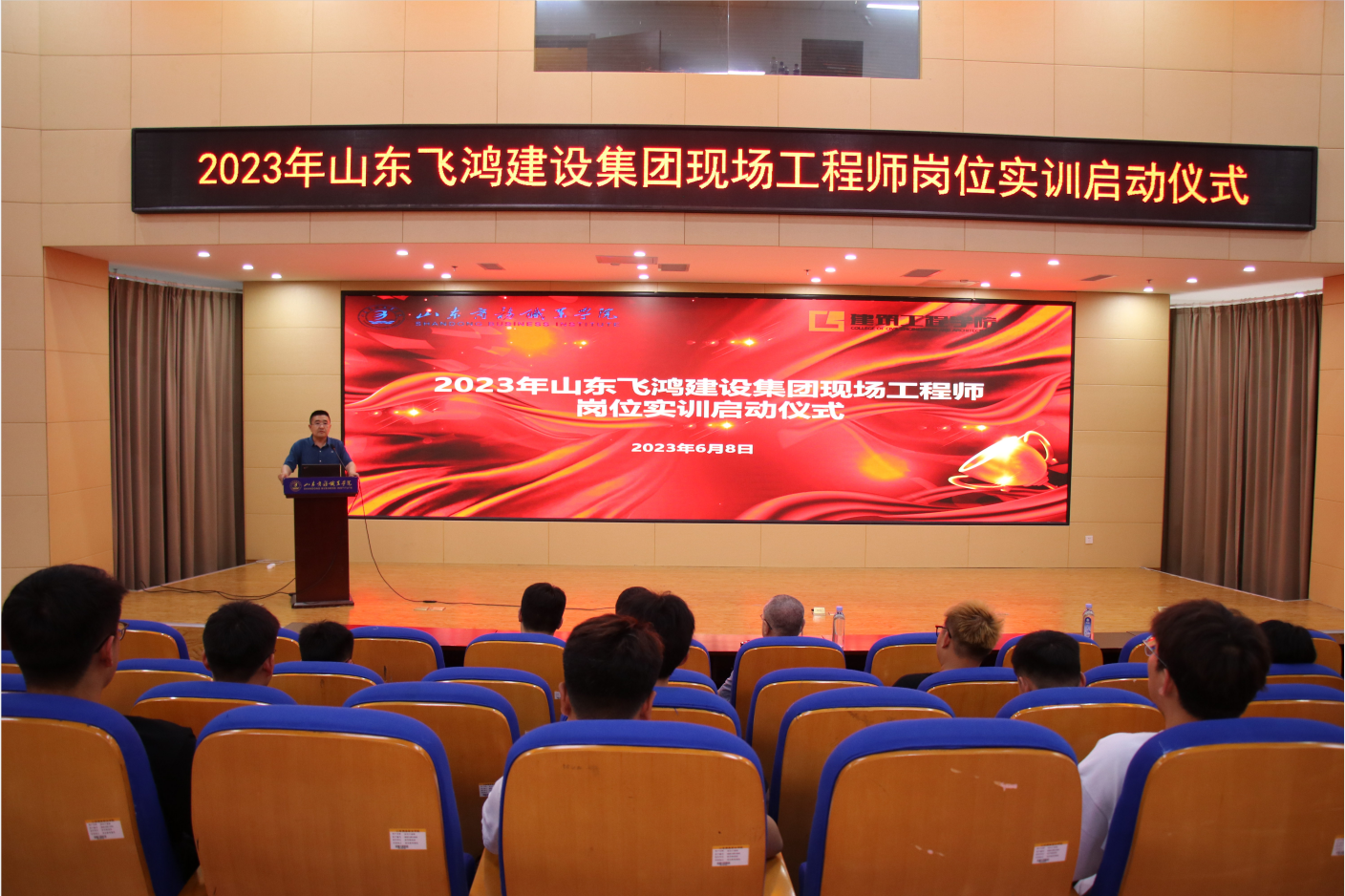 本站讯 6月8日,2023山东飞鸿建设集团现场工程师岗位实训启动仪式在我校党性教育基地举行。飞鸿建设集团相关领导、建筑工程师学院师生代表参加仪式。