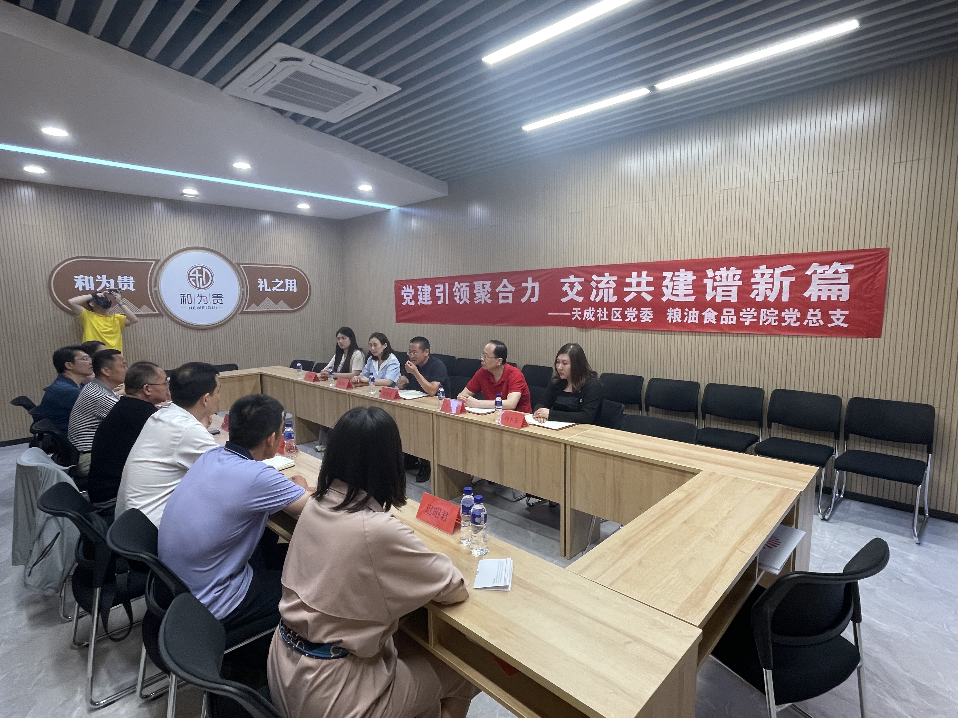近日,粮油食品学院党总支书记赵海成带领支部党员教师来到黄海街道天成社区,开展“党建引领聚合力,交流发展谱新篇”结对共建活动,携手社区推进高水平合作。活动中,天成社区党委书记赵智全重点介绍了社区基本情况、党建工作、社区治理和志愿服务需求情况,阐明社区与学院结对共建志愿服务团队的重要意义。赵海成进一步围绕院社文化共建、优势资源互享、党建品牌创新、强化社区和学院协同育人特色服务探索等方面提出建议,着力打造“群众需求”导向党建携手协作。