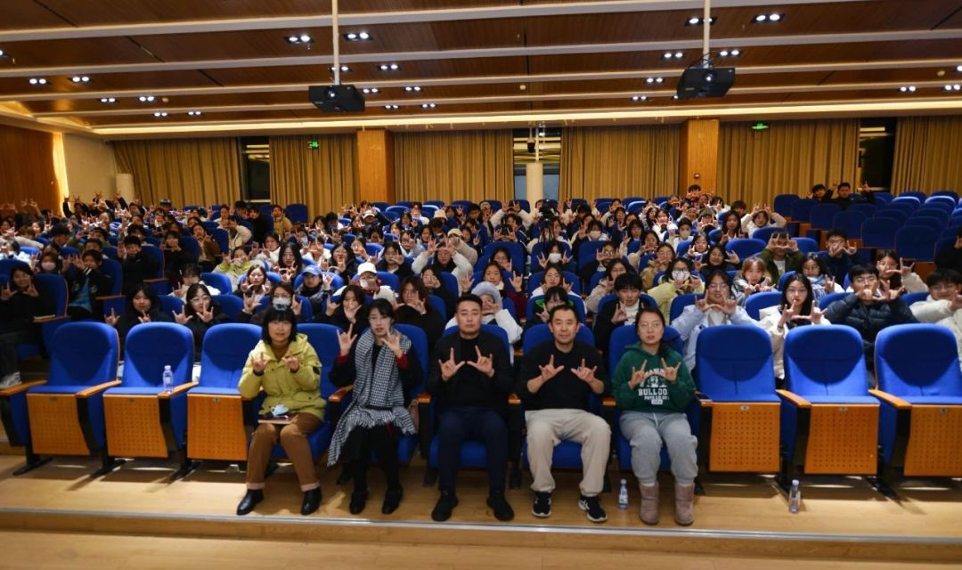 刘盼老师讲述了幼年时期因为用药导致听力障碍的个人经历,生动感人的描述引发现场学生的情感共鸣。讲座现场丰富有趣的互动体验活动,让学生亲身体验听障人士的“无声世界”,大家积极参与,对手语及听障人士文化表现出浓厚的兴趣。同学们纷纷表示,通过学习手语交流,深入了解了听障人士群体的生活不易和手语文化的魅力,每个人都应该关注弱势群体的权益和福祉,未来要多参加各类帮助听障人士的志愿服务活动,为构建一个更加和谐、包容的社会贡献自己的力量。
