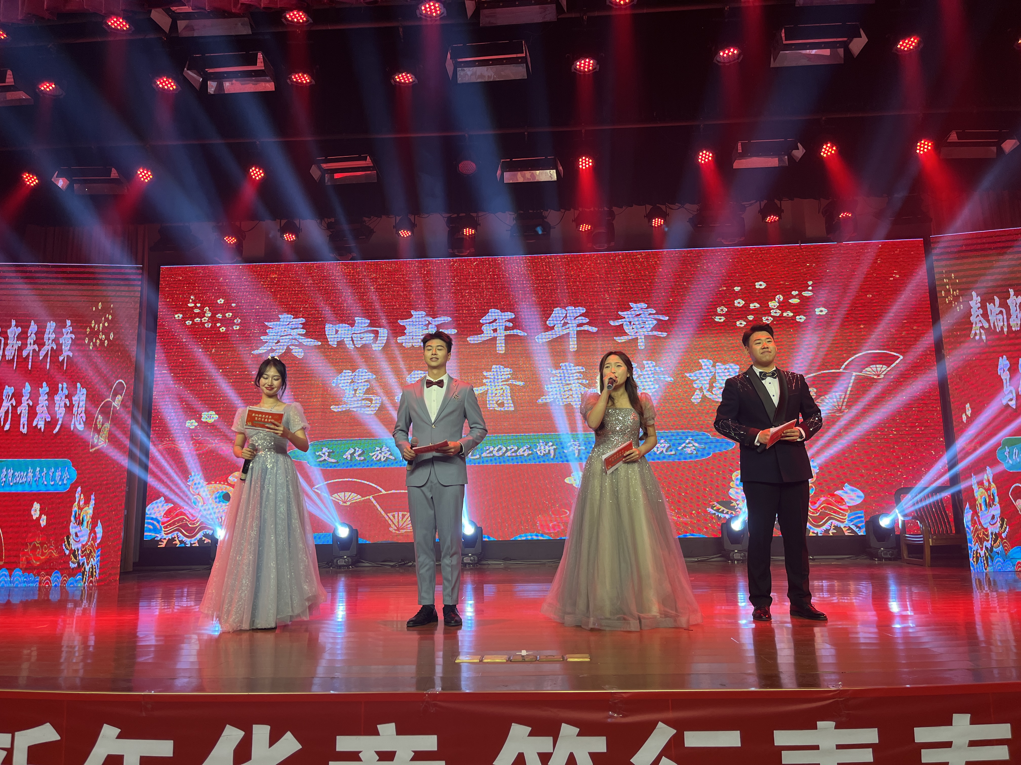 本站讯 日月开新元,万象启新篇。为进一步丰富校园文化生活,12月27日晚,文化旅游学院举办了“奏响新年华章,笃行青春梦想”2024新年晚会,师生代表700余人共同观看了演出。