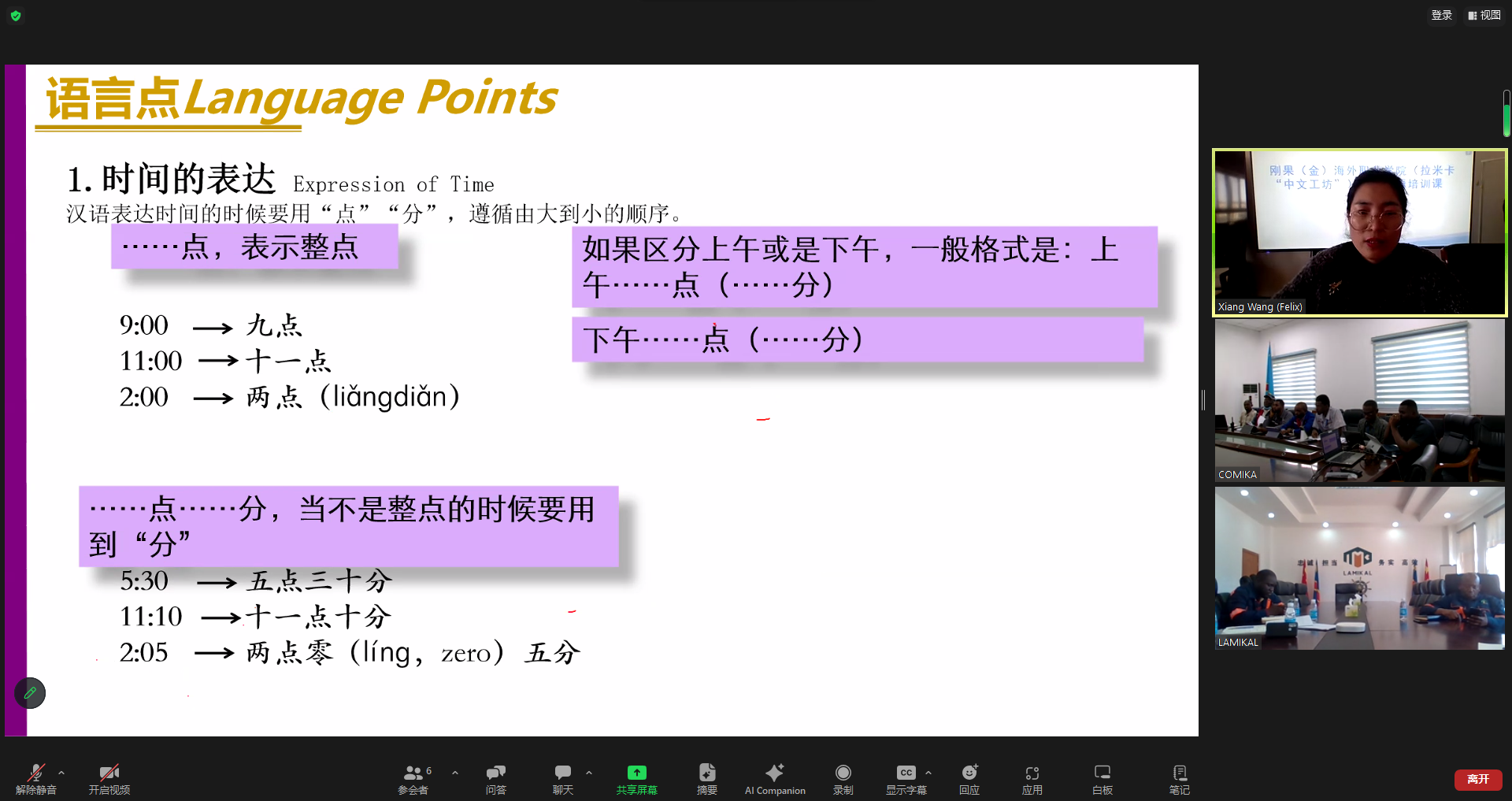 本站讯 4月18日,由北方矿业有限公司和我校联合举办的刚果(金)海外职业学院(拉米卡“中文工坊”)为期4天的初级汉语培训圆满结束。北方矿业有限公司人力资源部副主任高翔,学校国际教育学院负责人、国际汉语教师、助教翻译与来自北方矿业有限公司刚果(金)的近百名本土员工共同参加了此次线上结营仪式。