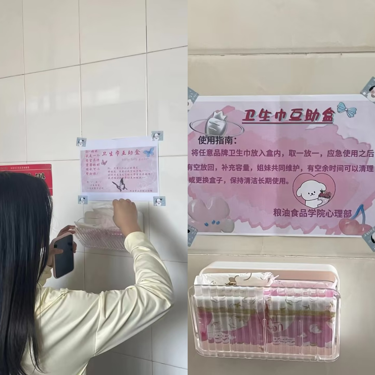 举办“做最美的自己,不被任何人定义”女生团辅活动。通过集体制作“月光宝盒”,聚焦女生的生理健康问题,让女生需要时能免费领取卫生巾,鼓励同学们积极行动起来,为关爱女生拾柴添薪。最后的“抱一抱”环节让大家倍感温暖,一个简单而真诚的拥抱让大家相互走近,彼此支持,形成了友爱、接纳、温馨的场域,帮助女生们增强了团队合作和互助关爱的精神。(通讯员、撰稿:迟昭君 审核:刘华鹏 梁倩 值班审核:成雪)
