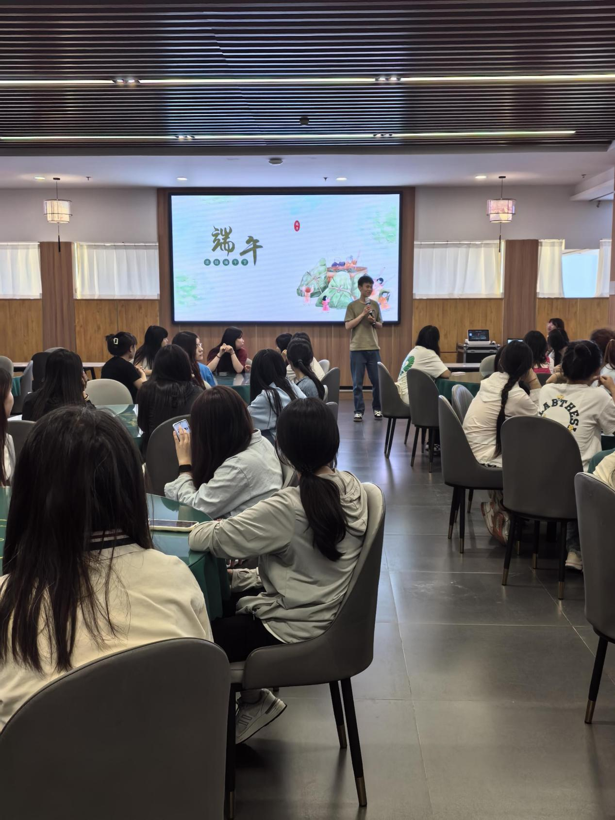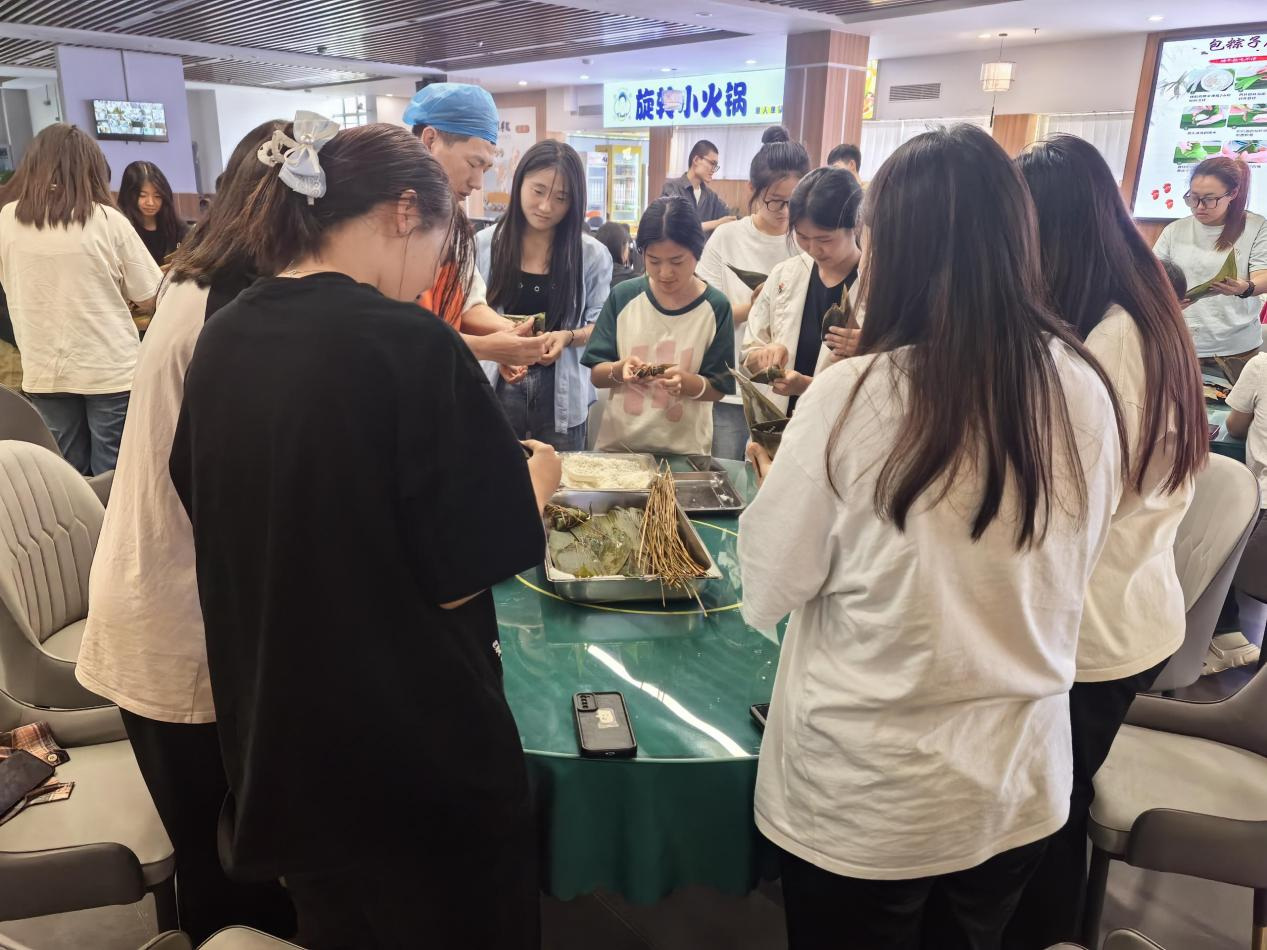 活动现场,信息工程学院学生王昱衡向同学们介绍了端午节的由来,讲述了屈原的生平事迹和端午节的相关习俗,让同学们更深入地了解端午节的文化内涵和历史背景,感受端午节的文化魅力。随后邀请了餐厅师傅为大家详细讲解并展示了包粽子技巧,在师傅们的耐心指导下,同学们动手尝试,在集体摸索与合作中掌握了包粽子的技巧。为活跃气氛,在等待煮粽子过程中,现场还组织同学们开展了击鼓传花端午诗句比赛、手脚协调团队竞赛、数字爆炸反应竞赛等系列活动,活动现场精彩纷呈、笑声不断,活动在品尝蜜枣甜粽和蛋黄咸粽中落下帷幕。参与的同学纷纷表示,此次活动有意义有价值,通过亲身实践进一步体验端午节的习俗,感受传统文化魅力的同时也结交了新朋友。