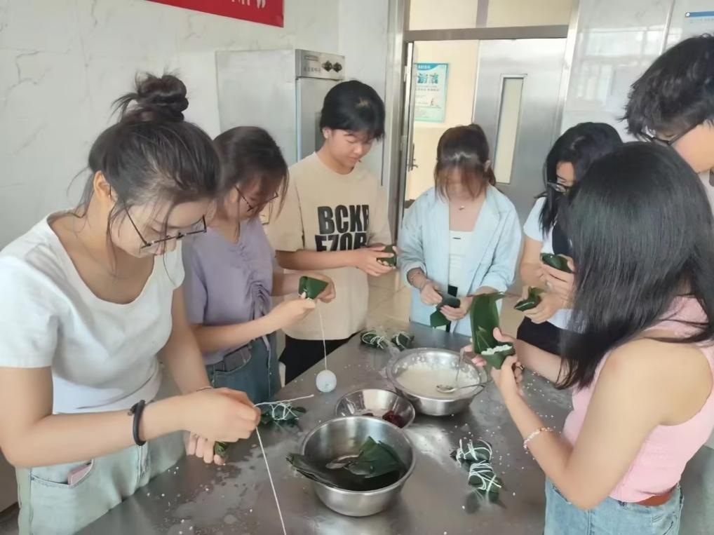 为提高学生技能,探寻中华美食文化,学院食艺社在实训楼组织开展传统美食制作活动,社团成员分为三组,分别制作咸蛋黄、鲜肉、红枣粽子。从折叶、盛料、压实,到裹叶、扎绳,通过反复的包制、拆分,学生们熟练地掌握了包粽子的技术要领。此次活动为学生技能提升提供了学习和培训平台,既传承了传统技艺,又促进了学生之间的交流。