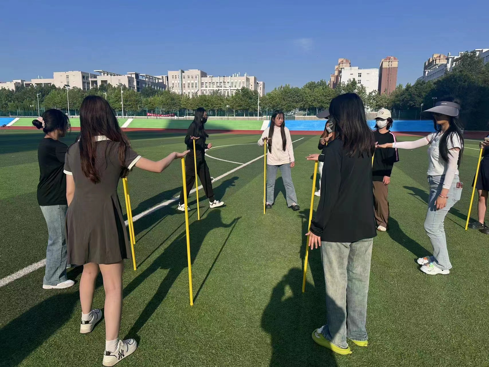 “能量传递你我他”户外心理拓展活动。在“不倒森林”“两人三足”“心灵传递”等活动中,同学们展现出超强的观察力和反应力,通过相互之间的默契和配合,在活动中充分发挥了团队协作精神。户外心理拓展活动不仅丰富了学生的课余生活,也真正落实了“以体强心”的理念,让学生投入到积极、健康的户外活动中去。