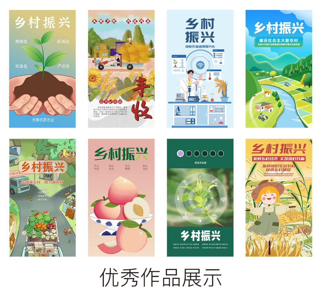 在此次创意竞技的舞台上,参赛者们围绕乡村振兴这一主题,巧妙地编织出别具一格的动态海报,展现了他们独具匠心的设计理念和创新精神。经过两小时的激烈比拼,选手们全方位地展示了他们在创意、创新、设计效果、技术能力、内容传达、适应性、原创性、观众反馈、完成度、主题相关性及实用性等多个领域的综合素养。