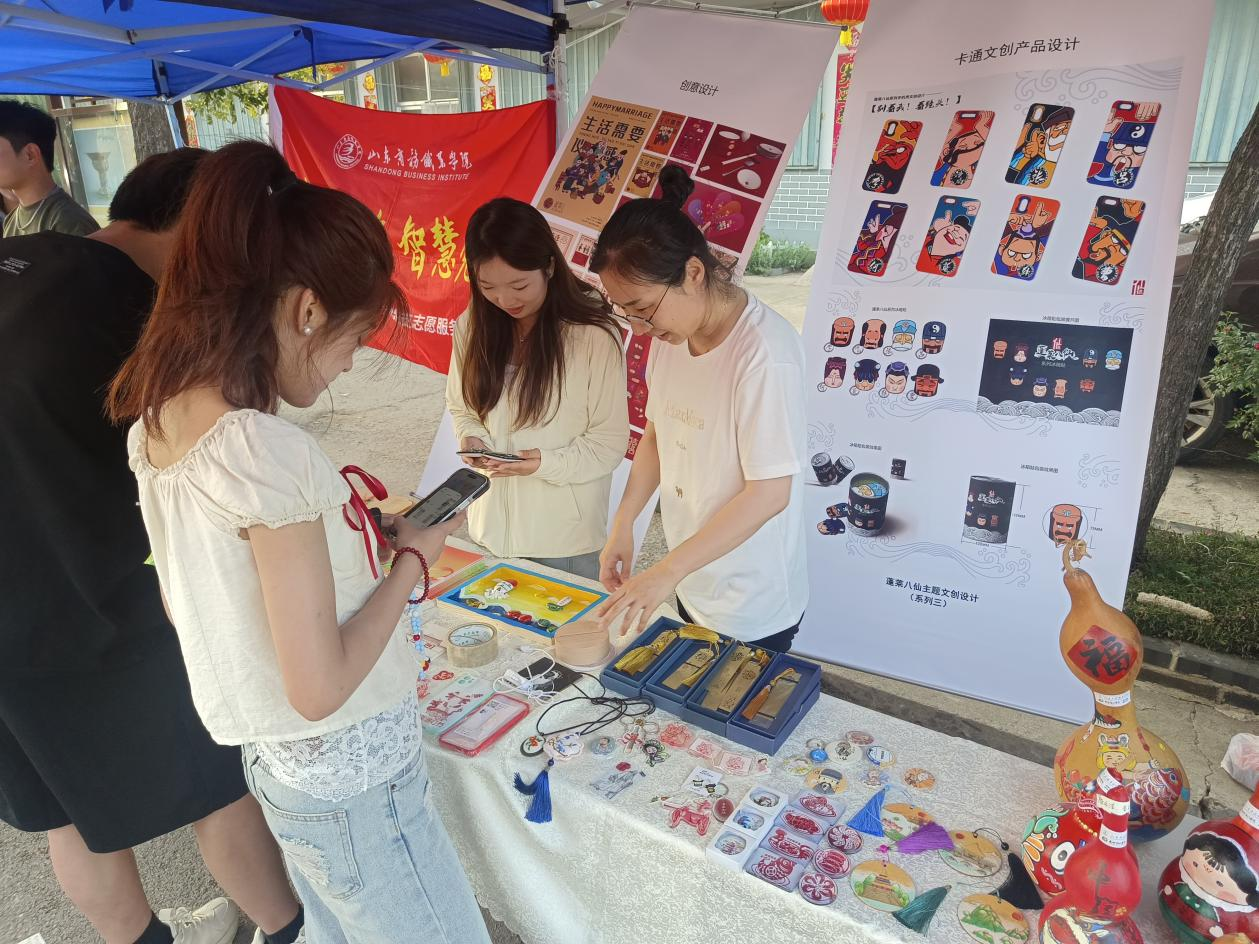 本站讯 为深入贯彻实践育人理念,弘扬传承优秀传统文化,搭建非遗手作交流平台,7月6日,艺术设计学院师生走进蓬莱市柳格庄村,举办“非遗文创作品展”,本次活动采用现场展示及沉浸式体验的方式,带领同学们了解非遗文物设计,欣赏非遗文化的独特魅力,同时丰富村民业余文化生活,助力乡村精神文明和思想道德建设。