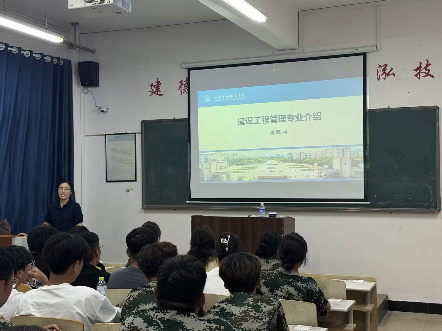 提供学习方向,增强专业自信。9月9日,在2A教学楼多媒体教室,建设工程管理专业负责人黄凤丽老师在对新生进行荣校爱校教育后,详细介绍专业培养目标、专业特色、课程体系以及优秀毕业生事迹,引导新生们转变角色,规划好自己的大学生涯。并就新生关注度较高的职业资格证书、BIM建筑协会、学历提升等第二课堂进行了详细介绍,使学生对接下来的专业学习充满了信心与期待。