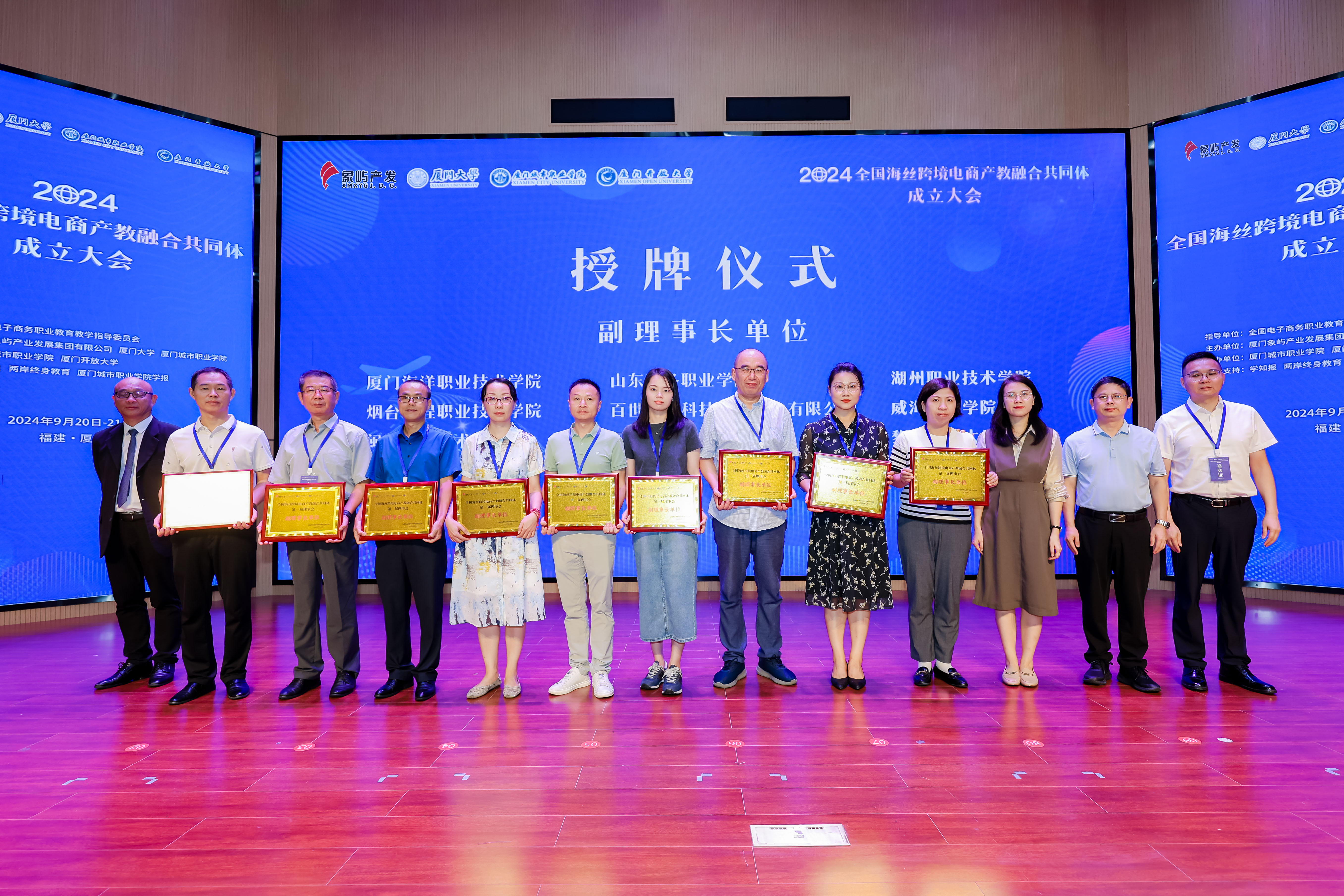 本站讯 近日,我校被授予全国海丝跨境电商产教融合共同体副理事长单位,经济管理学院副院长李蕊、跨境电子商务专业带头人陈晓宁代表学校赴厦门参加共同体成立大会。