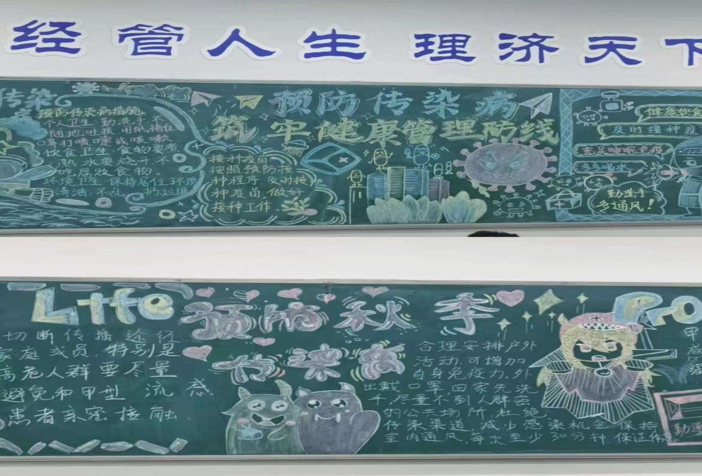 以画绘防,共筑健康校园。通过组织各班黑板报绘画竞赛的方式,展现学生群体高发传染病的类型、传播途径、预防措施等内容,提高同学们对传染病的认知和防范意识,还能激发同学们的创作热情,增强同学们的团队协作能力和健康素养,为构建健康、和谐的校园环境作出贡献。