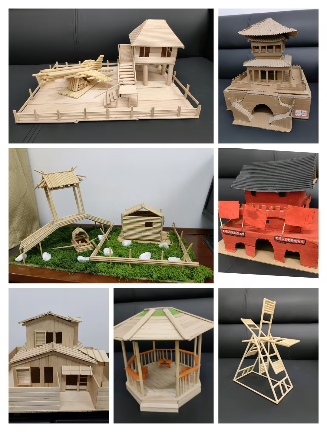 大赛自启动以来,便吸引了众多学子的积极参与。同学们纷纷从日常生活中寻找灵感,将牙签、筷子、废纸、棉签等看似无用的废旧物品,赋予了全新的生命。在专业知识的支撑下,他们大胆想象,细心雕琢,最终创作出了一系列既具创意又富有深意的建筑模型作品。