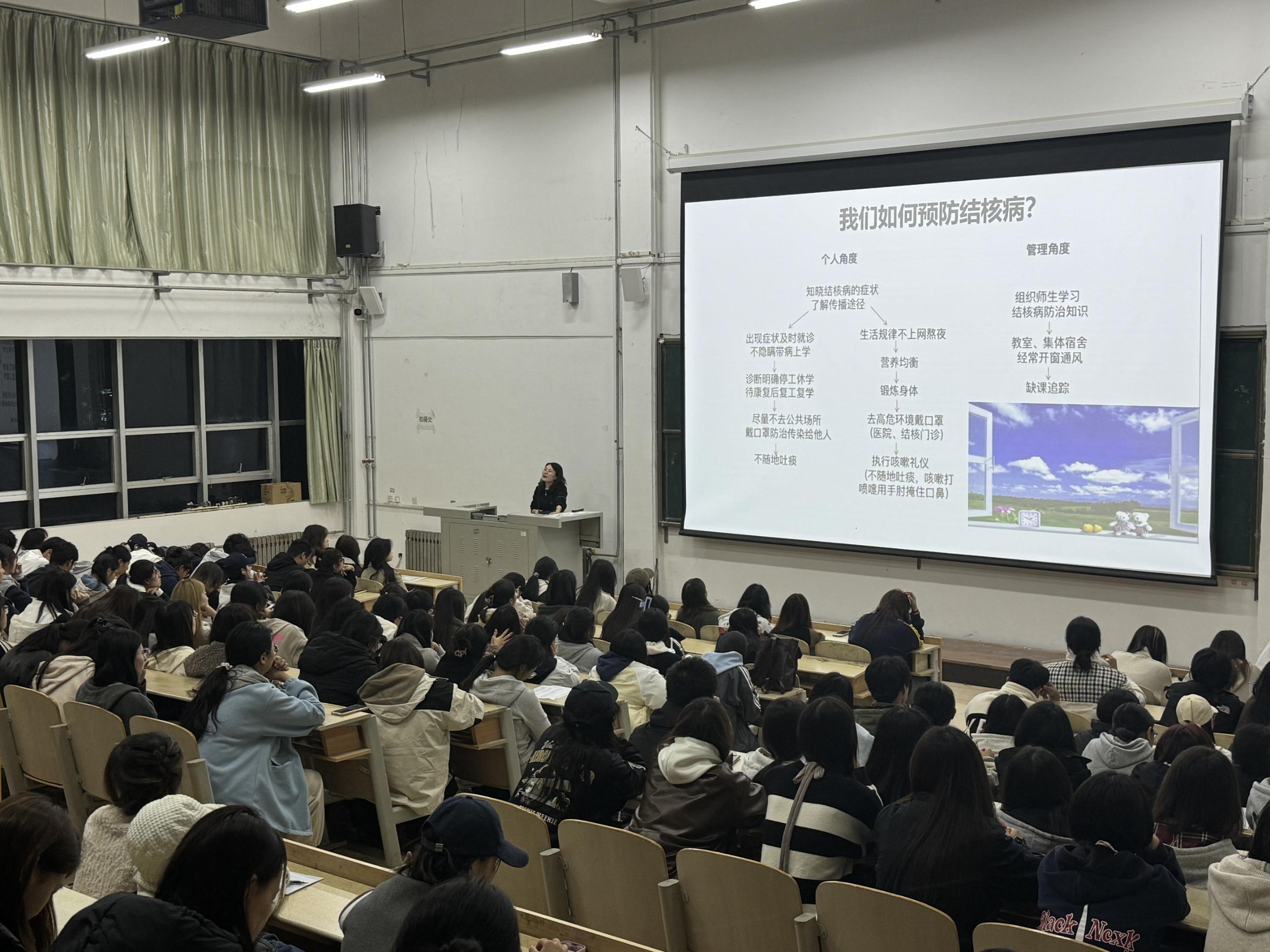 本次讲座邀请高新区免疫预防科主任吕彩霞为主讲嘉宾。吕彩霞通过一系列生动的案例与深入浅出的讲解,系统介绍了乙肝、流感、水痘、肺结核等校园内常见的传染病,详细阐述了它们的传播途径、典型症状、有效预防措施以及应急处置策略。讲座特别强调了个人卫生习惯的重要性,诸如勤洗手、正确佩戴口罩、保持室内空气流通等,并建议同学们在季节变换之际注重保暖,避免过度劳累,增强自身免疫力。