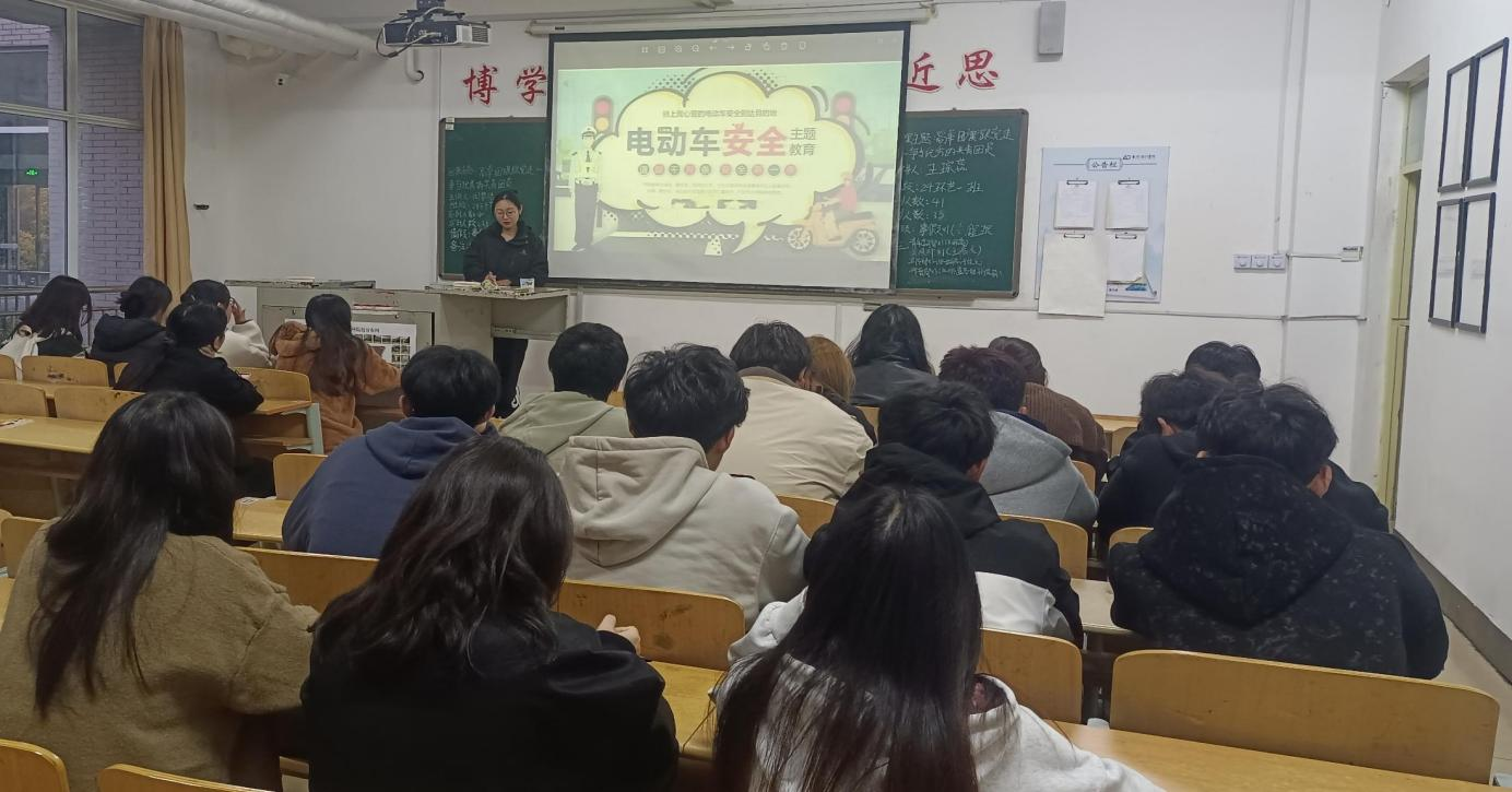 电动车安全不仅要靠外界监督,还要从提高学生自身规则意识入手。为此,学院还对有电动车的学生开展了电动车安全专题教育。专题教育从电动车安全事故、电动车头盔安全、电动车交通安全、电动车停放安全、电动车充电安全五个方面展开,教授学生正确使用和维护电动车的方法,从而有效预防因电动车故障或不当使用导致的交通事故。