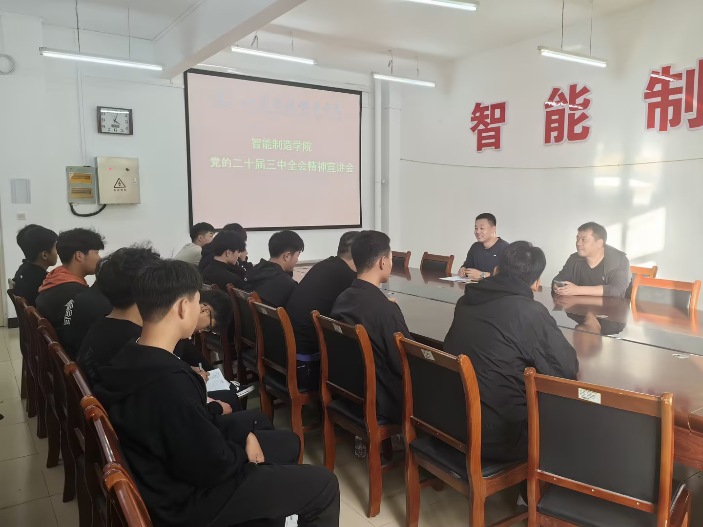 本站讯 为深入学习贯彻落实党的二十届三中全会精神,切实加强对学生的政治引领和思想引导,11月6日,智能制造学院党总支书记时登华为学生骨干讲授题为“认真学习党的二十届三中全会报告,立志成为担当民族复兴大任的时代新人”思政课。