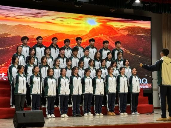 比赛现场,各参赛队伍以班级为单位整齐着装、精神抖擞地登上舞台。同学们用嘹亮的歌声演绎了《我爱你中国》《紫荆花盛开》等16首经典曲目。每一首歌曲都像是一扇通往历史深处的大门,在同学们的精彩演绎下缓缓打开。学院星辰合唱团带来的《美丽中国》,歌声气势磅礴,宛如汹涌澎湃的海浪,冲击着在场每一个人的心灵,使人热血沸腾。有的歌曲旋律深情悠扬,似潺潺流淌的溪流,细腻地诉说着那些动人心弦的故事,唤起同学们内心深处对祖国的热爱和对革命先辈的崇敬。