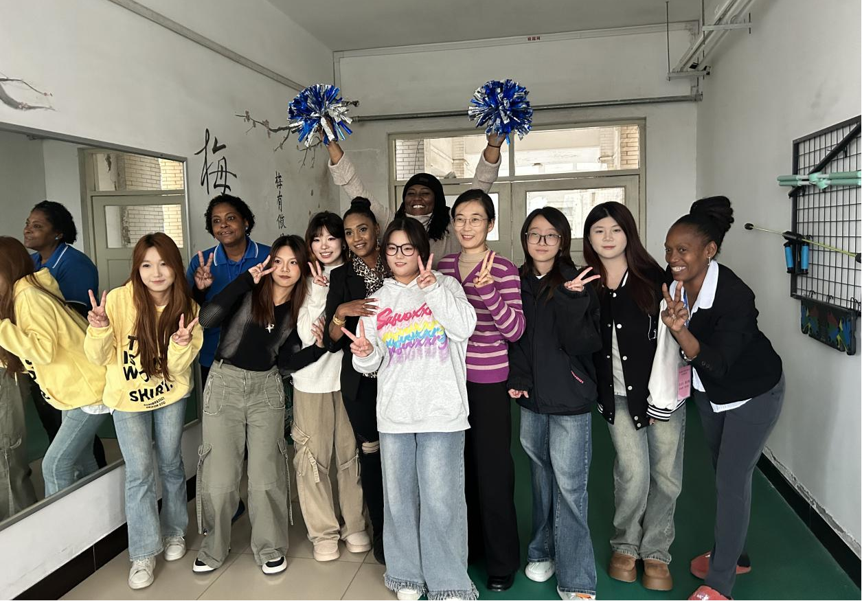 本站讯 11月7日下午,艺术设计学院师生和来自特立尼达和多巴哥共和国(简称特多)的4位教师,在学院“一站式”学生社区健身区开展了一场精彩的中外文明交流活动。