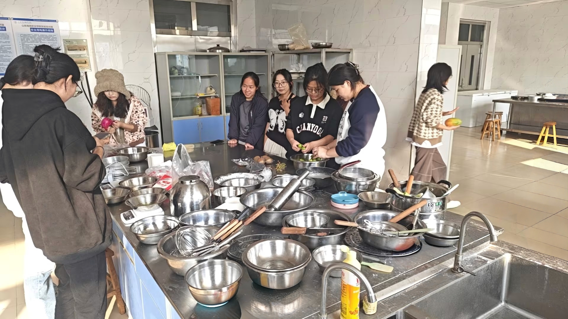 在烘焙培训中,于海洋老师现场指导,细心讲解蛋糕制作方法和烘焙过程中的注意事项。同学们积极参与,热情高涨,食艺社成员与同学们一起操作,从原材料处理到成品出炉,每一步都有条不紊。