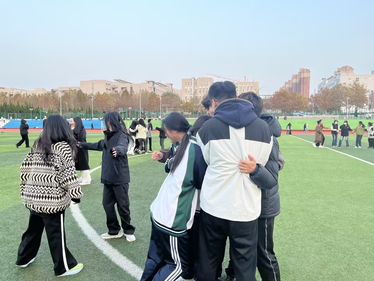 此次活动以“爱的拥抱”为主题,通过主持人报数字、学生根据数字几人抱在一起的趣味游戏形式展开。活动现场,学生们热情高涨,积极参与。随着主持人报出的数字不断变化,学生们迅速调整队伍,与身边的伙伴紧紧相拥。这一过程中,不仅考验了学生们的反应能力和团队协作能力,更在欢声笑语中拉近了彼此间的距离,增进了友谊。