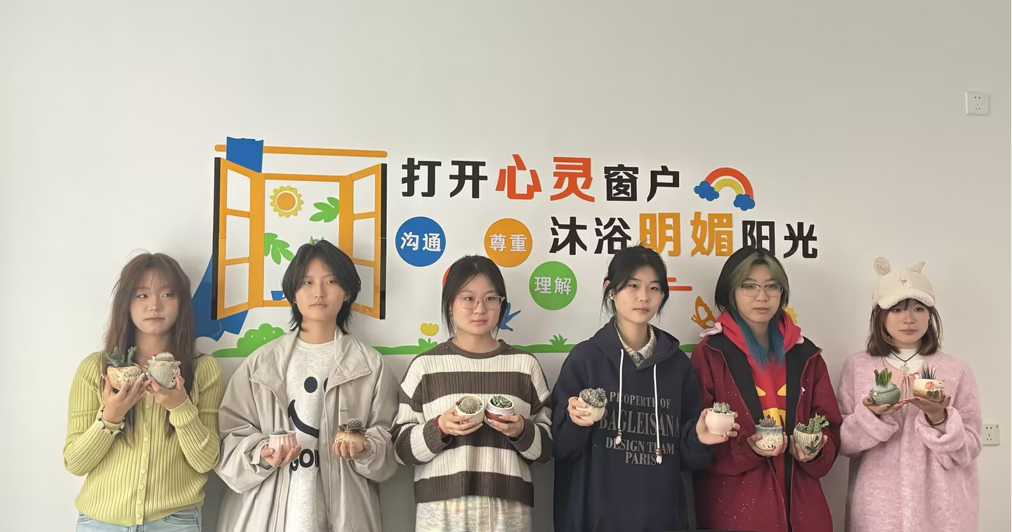 组织多肉植物认养活动。参与者通过自己动手种植、认养登记、打卡好心情并发朋友圈形式,养护属于自己的多肉植物。本次活动吸引了众多学生参与,同学们小心呵护自己的盆栽,在欢声笑语中种下一份美丽好心情,在宁静的冬天收获一份绿意盎然的喜悦。