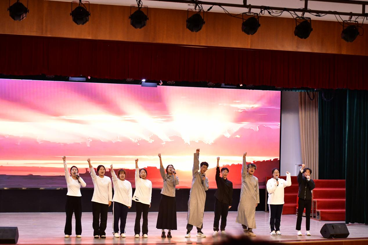 随着指挥的手势扬起,从《大中国》《我爱你中国》,再到《保卫黄河》,经管学子用青春的嗓音诠释着红歌的内涵,每一个音符都充满力量,现场观众沉浸在歌声的海洋中,感受着革命先辈们的奋斗精神和爱国情怀。