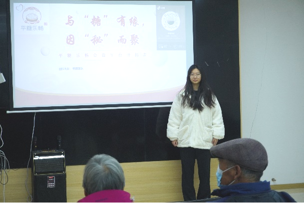 活动伊始,恒康团队的同学们迅速进入状态,成为“科普小能手”。考虑到老人的接受程度,他们摒弃晦涩的专业术语,用质朴、通俗的语言,深入浅出地讲解糖尿病、便秘两大老年常见疾病的饮食与运动预防及辅助治疗方法。“大爷大妈们,平日里吃得太油太甜,血糖‘蹭蹭’就上去了,便秘也容易找上门。”结合实例,同学们一语道出不合理饮食的弊端,瞬间引发老人们的强烈共鸣。