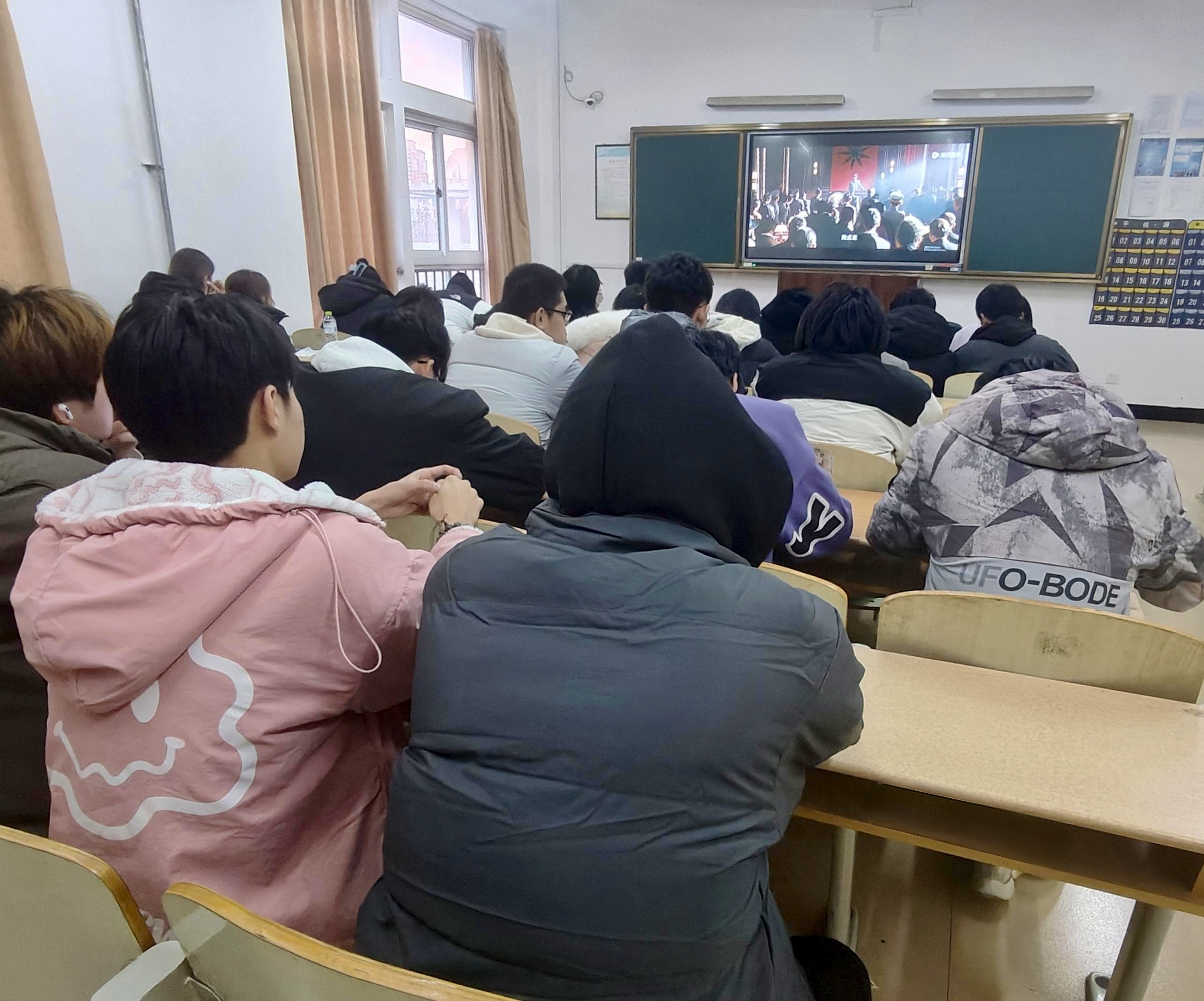 活动当天,学生们共同观看《建党大业》。影片以其震撼的历史画面和生动的人物刻画,重现了中国共产党成立前后那段波澜壮阔、热血激昂的岁月。从辛亥革命掀起的时代狂澜,到五四运动中莘莘学子们的激昂呐喊,再到中共一大的庄严召开,一个个重大历史事件依次呈现,仿佛将同学们带回到了那个战火纷飞、英雄辈出的年代,让同学们深刻感受到先辈们为了民族独立和人民解放而不惜牺牲一切的崇高精神。观影过程中,学生们全神贯注,仿佛置身于那个风云变幻的时代,被革命先辈们坚定的信仰和无畏的勇气所深深感染。