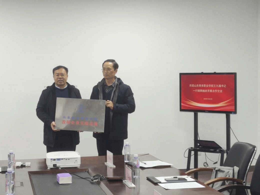 交流结束后,王九福代表学院向烟台中科网络技术研究所授予了“教师实践工作基地”牌匾。