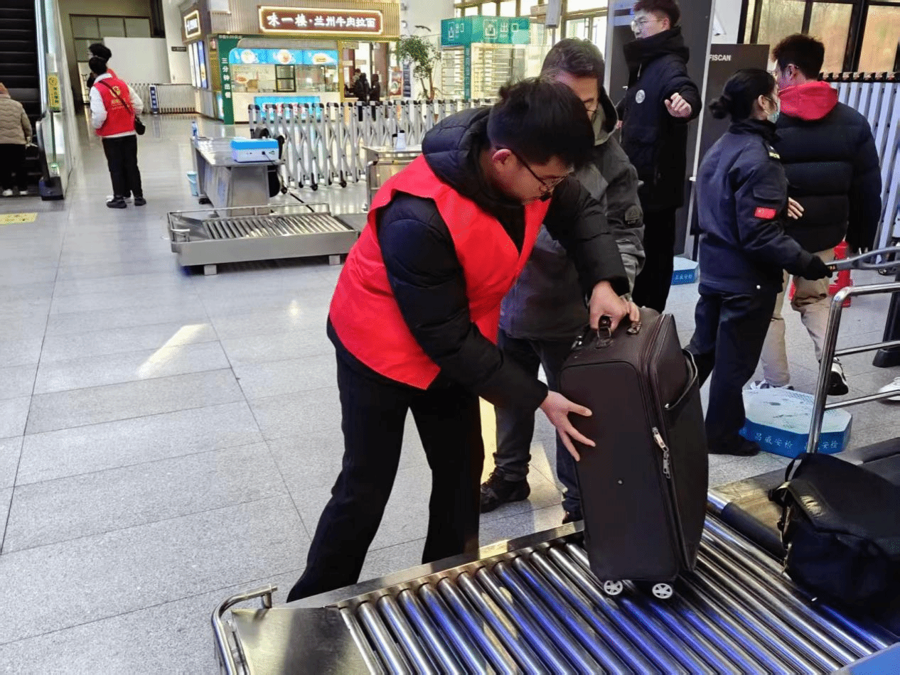 春运护航—以青春守护归途温暖。春运期间,24贯通班冯华帅等几名同学主动加入志愿服务队伍,成为护航春运的青春力量。在安检通道,他们身着红马甲,协助旅客搬运行李,维持现场秩序。面对老年旅客不熟悉电子设备的情况,他们耐心指导,细致讲解安检流程,用“一步一提示”化解旅客焦虑。冯华帅同学说:“看到旅客因我们的帮助顺利踏上归途,所有的疲惫都化作暖意。这份‘被需要’的幸福感,正是青春最美的注脚。”