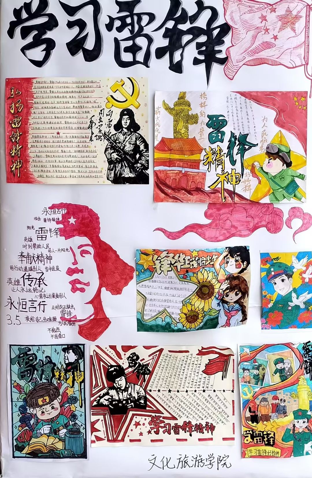 本站讯 3月10日,文化旅游学院组织开展“‘锋’华正茂恰少年”学习雷锋宣传教育系列活动,通过创意喷绘展示、手抄报创作、主题黑板报评比等多元化形式,在校园内掀起学习雷锋精神的热潮。
