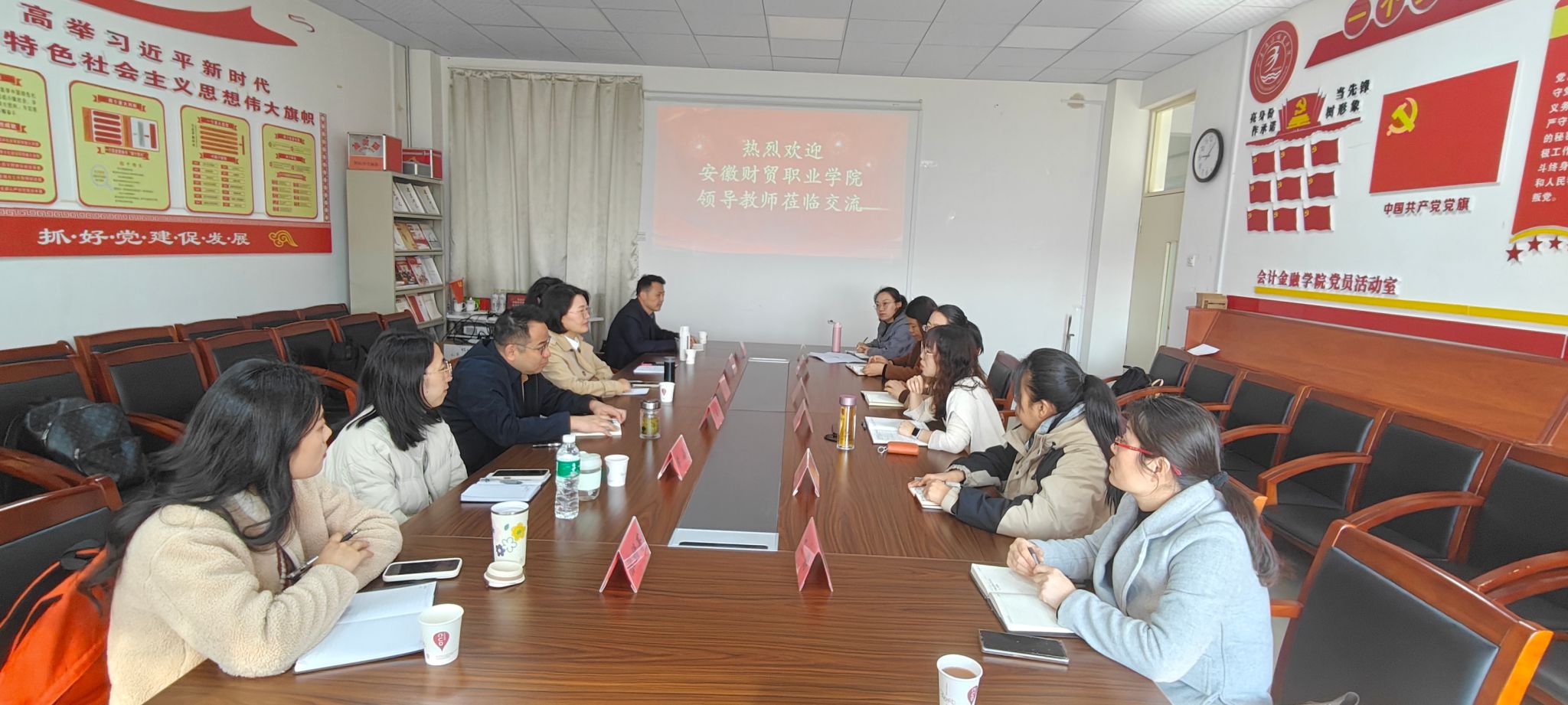 本站讯 为深化职业教育教学改革,推动会计金融类专业高质量发展,4月2日,安徽财贸职业学院财会金融学院副院长宋鹤年、孙敬平及各专业负责人来我校调研交流,会计金融学院院长付晓、副院长邹婷、姜力琳及各专业负责人参与交流。双方围绕“技能竞赛经验分享”“产教融合实践探索”和“专业人才培养方案优化”三大主题展开深入研讨,旨在互学互鉴、共谋发展。