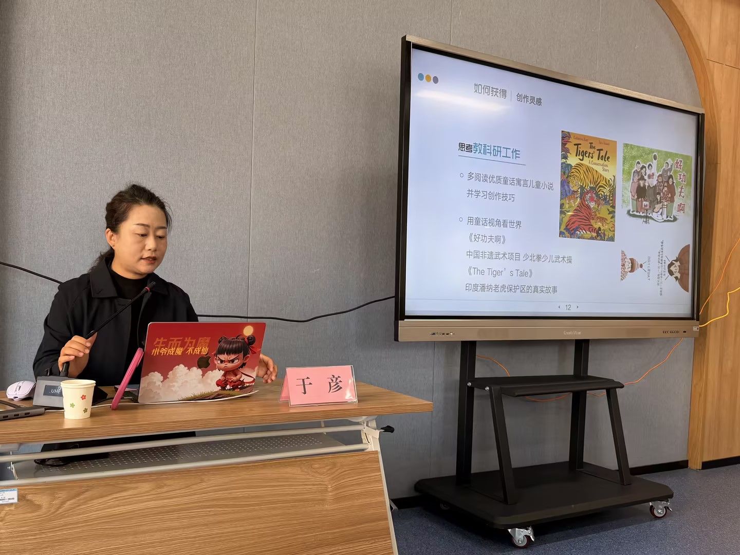 随后,于彦老师以《儿童图画书创作交流分享》为题,分享了从生活观察、幼儿兴趣捕捉到故事成形的全过程。她提出“儿童视角是图画书创作的核心”,鼓励教师通过记录幼儿日常对话、游戏行为积累素材,围绕如何获得创作灵感,从创作过程到图画书的诞生进行了生动讲解。专题讲座结束后,教师团队在园长的带领下参观了幼儿园的阅读区、室内教室和户外活动区。园内以图画书为主题的环创设计令人耳目一新。活动的压轴环节由滨海路街道中心幼儿园园长隋广英以《幼儿园图画书阅读课程的深度构建与实践探索》为题,系统分享了园所将图画书融入集体教学、区域活动、生成课程、传统文化、戏剧表演、幼儿游戏六大领域的实践经验。