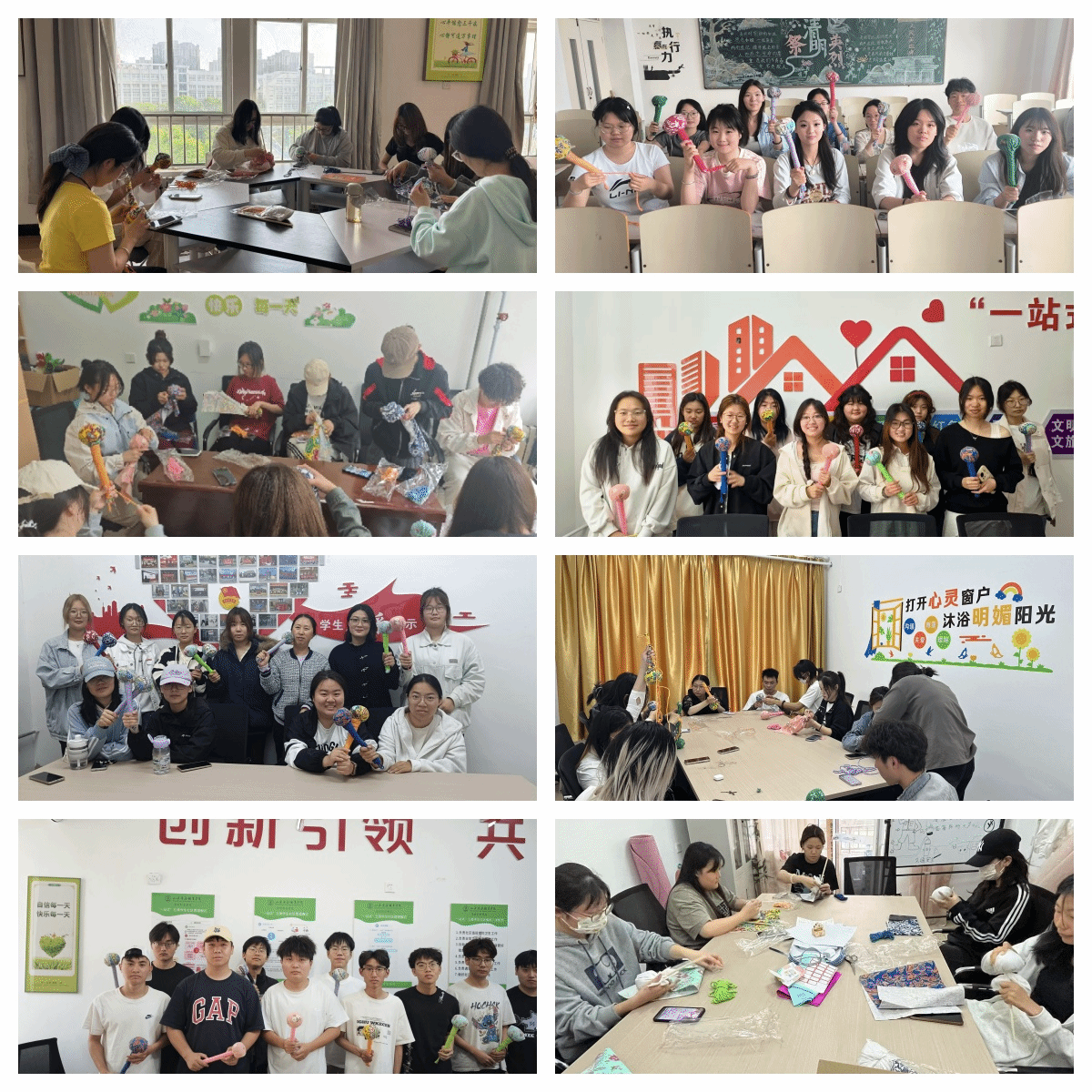 本站讯 近日,大学生心理健康教育中心携手公寓管理中心,在“一站式”学生社区心理小屋举办“艺术·家”艾草锤手作体验活动。80余名师生将艾草、棉布与彩绳编织成养生锤,在传统技艺中开启匠心心流模式。