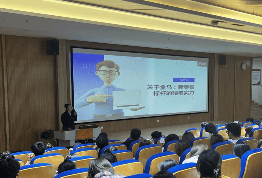宣讲会上,新零售领军企业上海盒马鲜生带来 “线上线下融合” 的创新职业图景。企业代表以 “鲜美生活” 使命为切入点,解析其在供应链管理、数字化运营等领域的核心竞争力,并推出门店运营、物流理货、供应链支持等多维度实习岗位,充分满足不同专业学生的职业需求。薪资福利方面,除行业竞争力薪酬外,特别提供公寓式住宿、员工福利餐及预支生活费等 “无忧保障”,缓解毕业生职场初期压力,更通过 “实习生—区域主管”的真实成长案例,展现企业 “能者上” 的晋升文化,点燃学生职业热情。