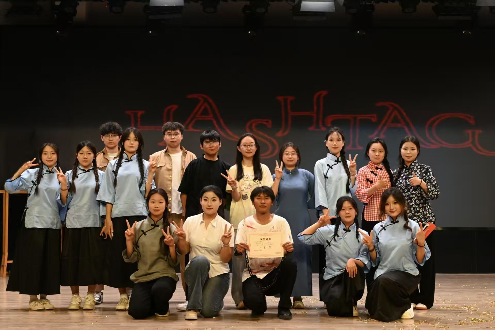 随着大幕的拉开,红岩的故事在舞台上生动展开。光影交错中,文旅学子以充满力量的肢体语言和饱含情感的台词,迅速将观众带入那段激情燃烧的岁月,台下的观众带着深深的敬意,感受着那段波澜壮阔的历史。此次演出创新性地将现代舞与戏剧表演深度融合,刚劲有力的对抗性舞蹈,生动诠释了革命者与敌人的殊死较量;极具感染力的肢体语言,让观众仿佛置身于惊心动魄的斗争现场。当演员们以整齐划一的舞蹈动作重现“狱中绣红旗”场景时,全场爆发出经久不息的掌声,将演出推向高潮。