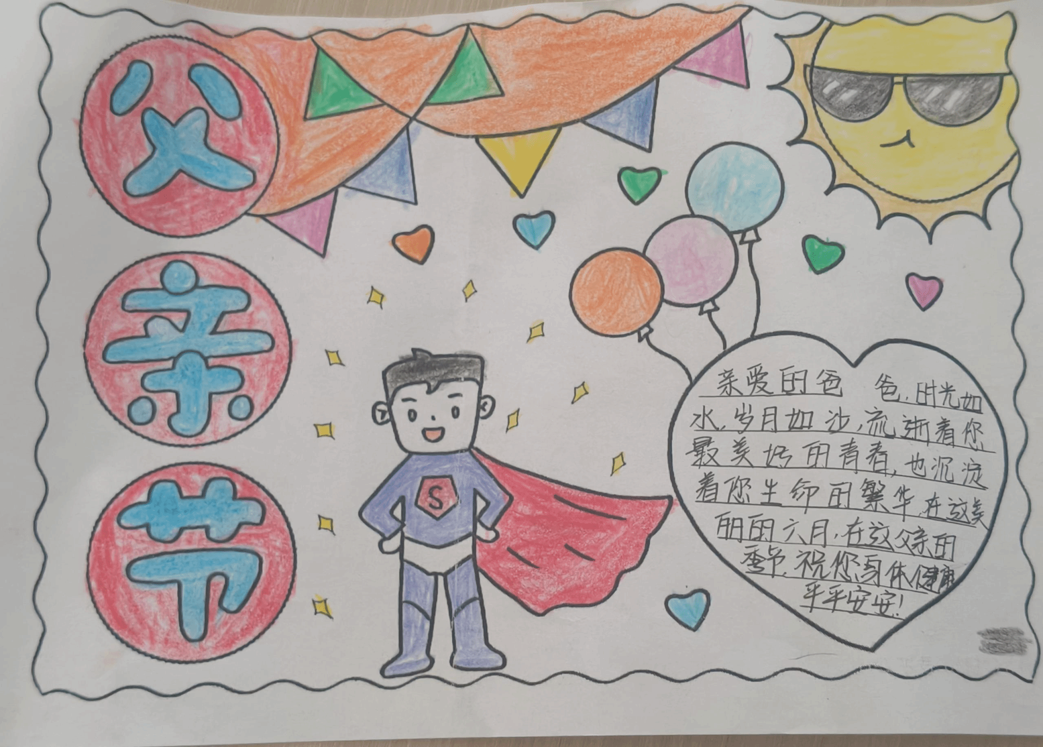 活动受到同学们的热烈响应,在书信创作环节,同学们以细腻的笔触回忆与父亲相处的点滴瞬间,字里行间流露出真挚的情感。“爸爸总是不善言辞,但我知道他的爱藏在每一件小事里——藏在雨天递来的伞里,藏在深夜等我回家的那盏灯里。”2023级的同学在信中深情写道。手抄报作品则通过精巧的版面设计、温暖的色彩搭配和真挚的感恩语录,生动展现了父爱的深沉与伟大。