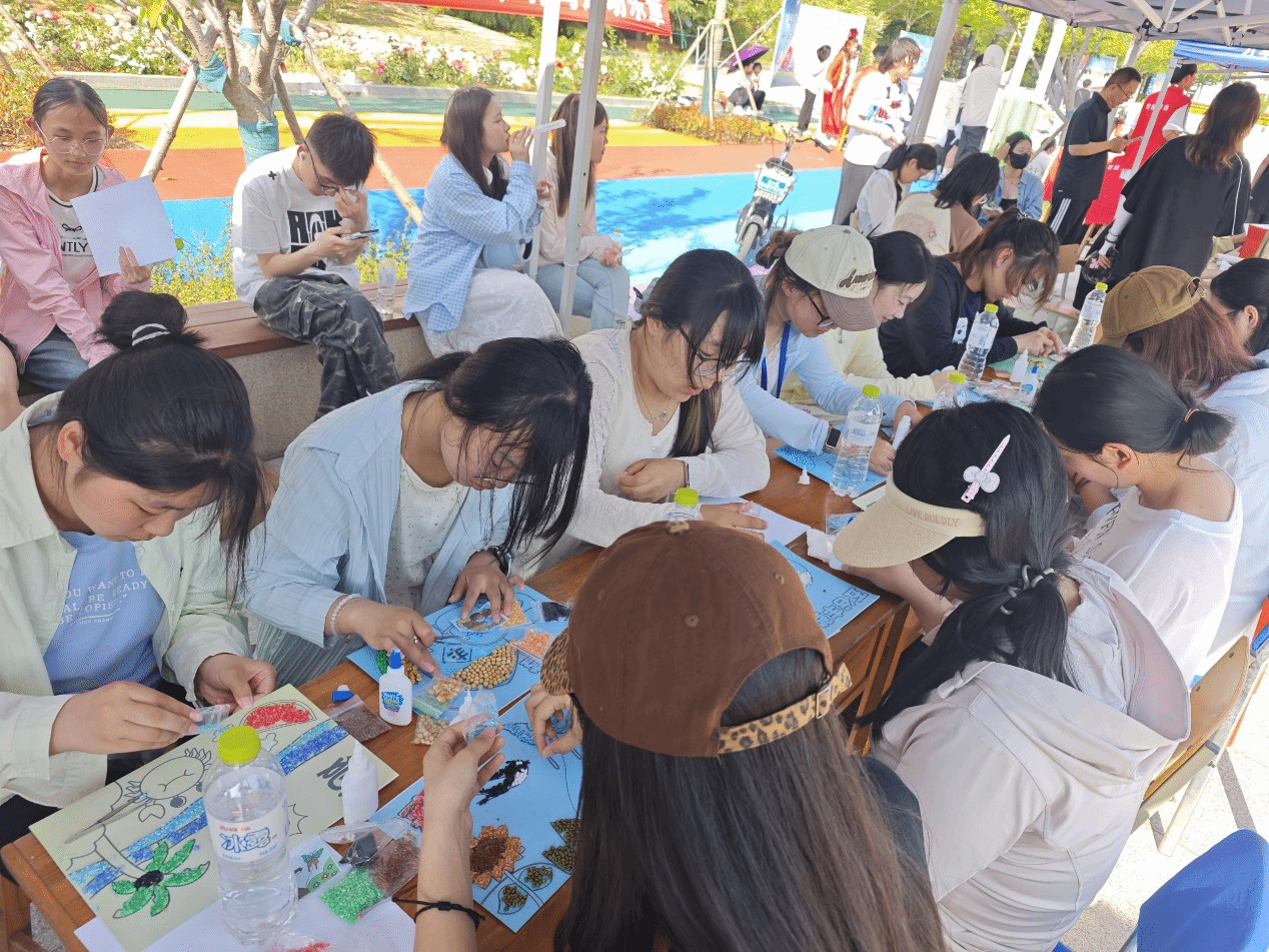 活动后段的心理转化机制尤为精妙。当24粮食工程质量1班陆畅将红小豆粘贴成心电图波纹时,下意识把原本断续的折线修改为平稳起伏。这个不经意的调整被观察员记录为典型的压力具象化处理:她在操作过程中实现了对紧张情绪的视觉重构。其他典型案例还包括某个学生用玉米渣堆叠“知识高峰”时舍弃部分谷物,隐喻对完美主义的调整;另一个学生将散落绿豆聚成星群,暗示迷茫中的希望聚焦。专业心理团队设置的渐进式主题引导——“呈现困扰”到“转化压力”再到“发掘资源”,在无言的创作过程中得以具象实现。