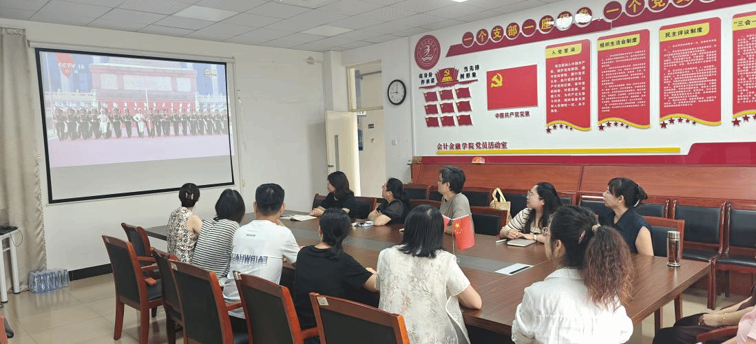 9月3日上午9时,纪念中国人民抗日战争暨世界反法西斯战争胜利80周年大会在北京天安门广场隆重举行。会计金融学院会议室内,全体党员教师整齐就座,集体收看九三阅兵现场直播,共同见证这一庄严时刻。