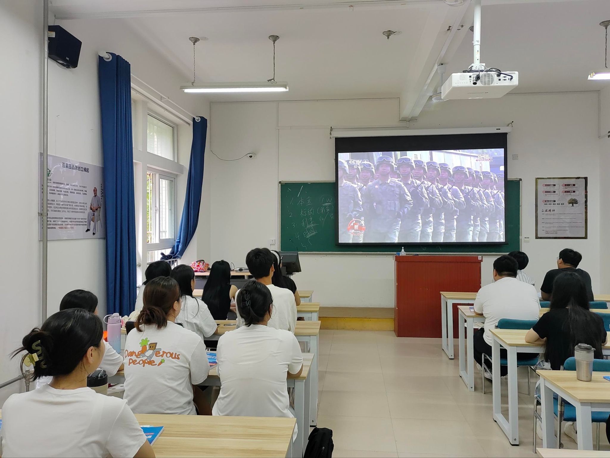 为确保全体师生都能实时收看阅兵盛况,学院精心安排,在会议室和各个教室设置了观看点。当80响礼炮震彻云霄,国旗护卫队官兵护卫着五星红旗冉冉升起时,师生们全体肃立,神情庄重,共同感受这一庄严时刻。