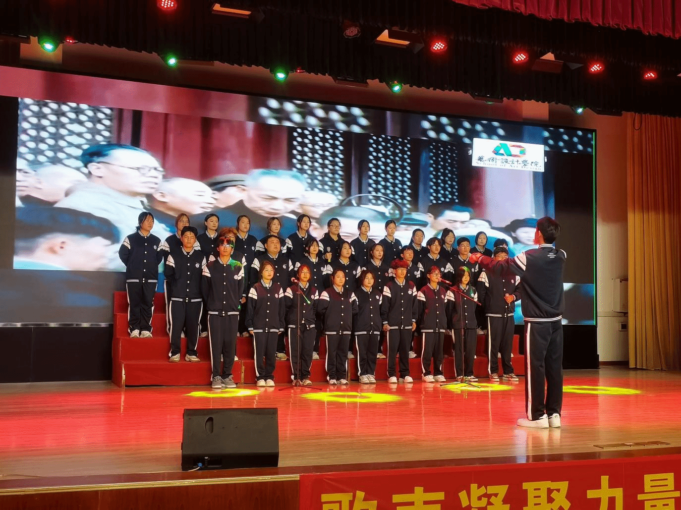 比赛现场乐声待起,舞台灯光温润明亮,热烈的氛围在音乐厅内悄然弥漫。开场星辰合唱团的《我爱你中国》率先奏响,旋律悠扬而深情,瞬间将全场带入对祖国的深情告白之中,奠定了整场比赛的红色基调;在同学们演绎的《如愿》《没有共产党就没有新中国》等16首经典曲目中,各班以细腻的情感诠释着先辈理想与后辈传承的重量,并充分发挥了艺术设计专业特色,从服装的创意搭配到队形的巧妙设计,从和声的精准处理到情感的饱满表达,将专业创意与红色精神深度融合,台下掌声与喝彩声交织,红色旋律在厅内久久回荡,为观众呈现了一场极具感染力的红色视听盛宴。