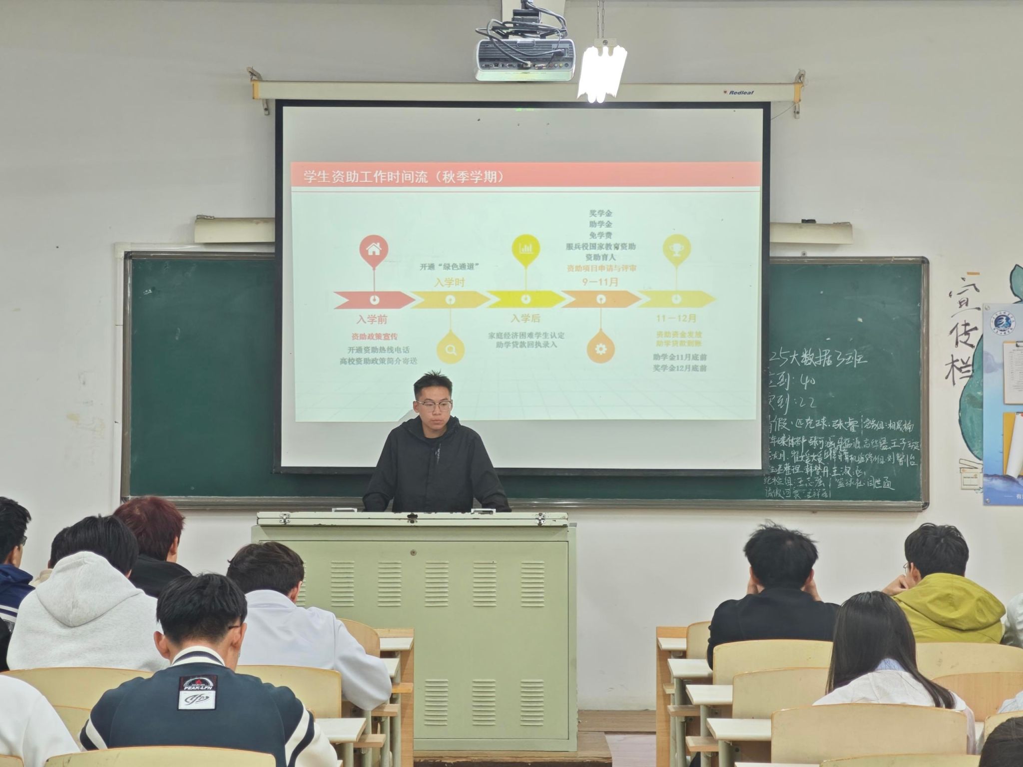 10月13日至21日,学院资助宣传大使宣讲团以“精准传策、暖心助航”为主题,面向全院新生班级开展全覆盖式资助政策宣讲。宣讲团成员分工梳理政策要点,聚焦退役士兵教育资助、家庭经济困难学生认定与帮扶、生源地信用助学贷款申请还款、各类奖学金申报评审四大核心模块展开讲解。互动环节中,新生针对“困难生申请材料准备”“助学贷款利息计算”等问题积极提问,宣传大使逐一细致解答,有效消除政策认知盲区,让家庭经济困难学生切实感受到学院关怀,为后续精准资助工作夯实基础。