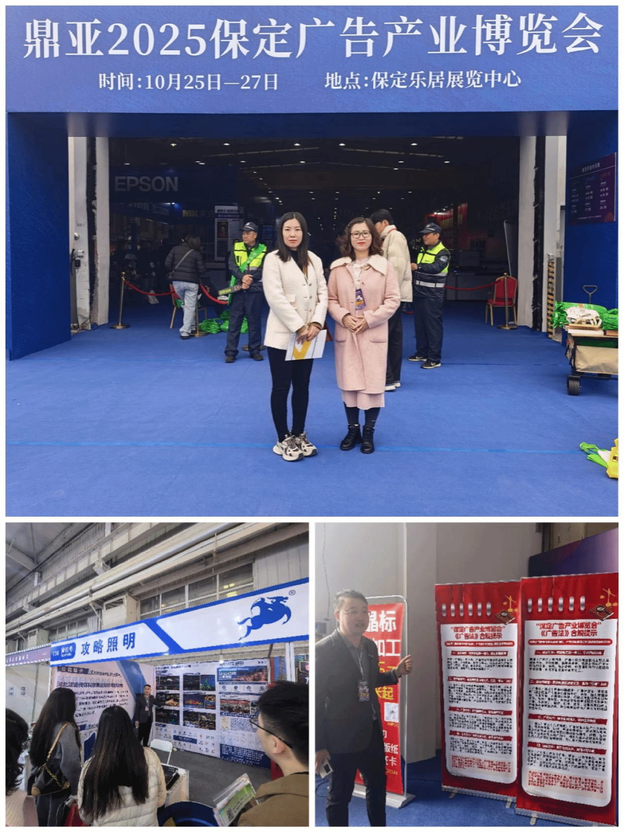 结束北京的行程后,考察团随即赶往保定市。在保定市市场监督管理局与保定市广告协会的精心安排下,两位老师参加了2025保定广告产业博览会。博览会集中展示了华北地区广告产业在数字技术、新材料、新工艺等方面的应用成果。随后,一行人实地参观了当地具有代表性的广告企业,对其先进的生产设备、高效的管理模式及创新的业务形态进行了现场观摩与学习。