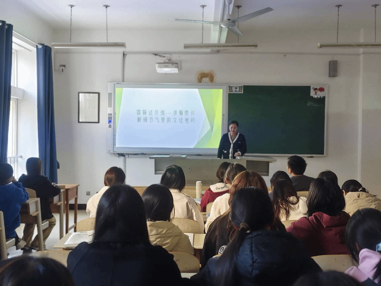 品韵金秋,传承中华传统文化。10月24日,开展“霜染金秋色,静品岁寒韵”文化体验活动。活动以秋日文化为核心,设置传统习俗讲解、手工创作、诗词品鉴三大板块。会计金融学院特邀老师,结合时令特点解读霜降节气的由来、农事习俗与养生智慧,从“贴秋膘”的饮食传统到“赏秋菊”的文人雅趣,让学生们深入感受节气文化的深厚底蕴。手工创作环节成为活动亮点。同学们用银杏叶、枫叶等秋日素材制作书签与贴画,将自然之美融入手作创意;书法爱好者挥毫书写“霜降”主题诗词,笔墨间尽显传统文化魅力。诗词品鉴会上,大家围坐交流,分享《山行》《秋词》等经典作品的赏析心得,在诗词吟唱中体悟秋日意境与文人情怀。