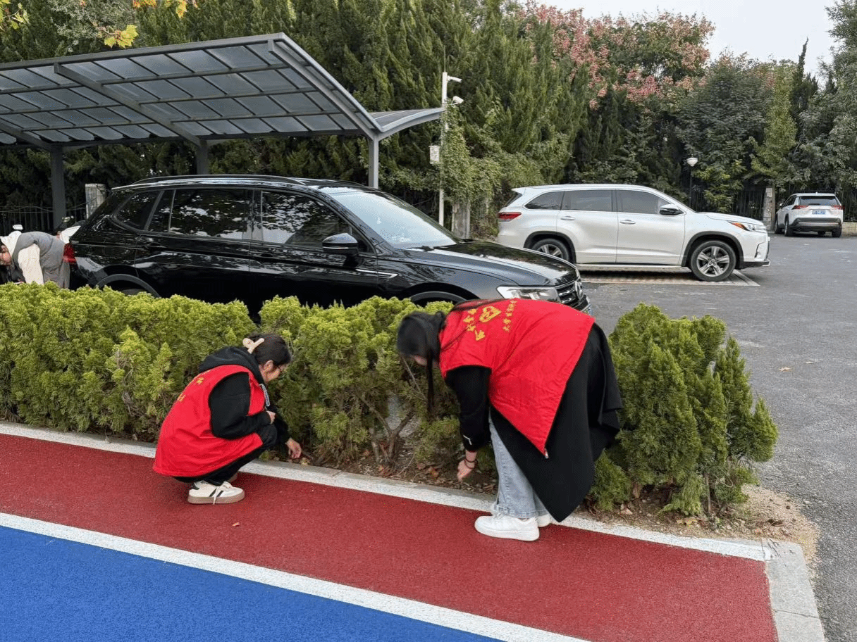 与此同时,为响应“文明校园”建设号召,学院发起了“追光扫绿·无死角计划”专项清理行动。志愿者们化身校园环境的“守护者”,深入绿化带、灌木丛等卫生死角,细致清理落叶与杂物。此次活动不仅有效美化了校园环境,更是一堂深刻的劳动教育实践课。同学们在挥洒汗水中,强化了集体责任感与主人翁意识,将“爱护环境、人人有责”的理念内化于心、外化于行。