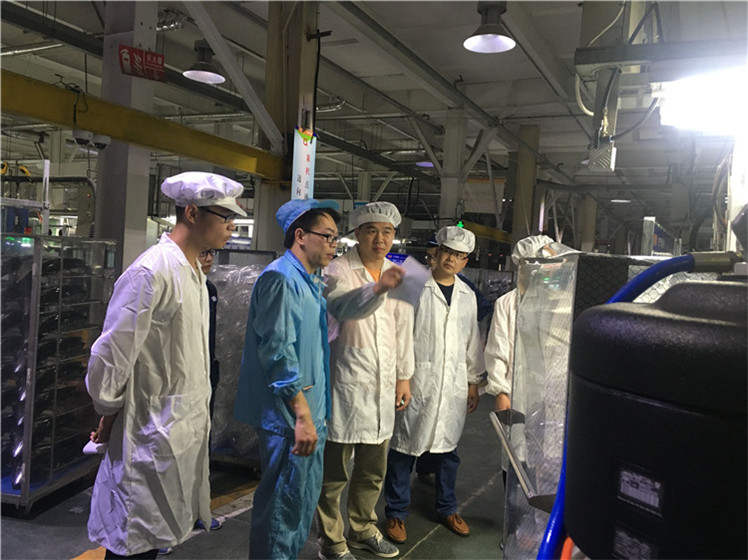 在公司工会主席高鹏、技术研发项目负责人贾萌的陪同下,学校一行三人实地考察了生产车间自动线生产全过程,对待升级的自动线工作过程和升级需求,进行了详细记录,并就车灯生产过程中自动化生产线改进问题与公司技术人员进行商讨,初步达成了合作意向。