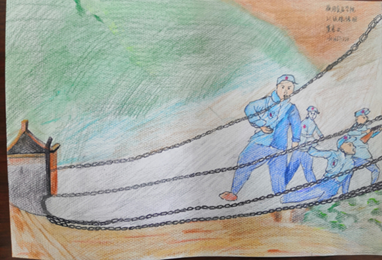 在活动开展前期围绕长征开展专题教学,让学生深刻体会到中国共产党领导中国工农红军完成震惊世界的长征,是一次惊天动地的革命壮举,是中国共产党和红军谱写的壮丽史诗,是中华民族伟大复兴历史进程中的巍峨丰碑。红军长征创造了气吞山河的人间奇迹,谱写了中国革命史的光辉篇章,奠定了中国革命胜利前进的重要基础。同学们在此基础上认真思考创作,主题突出,一幅幅作品生动地再现了红军长征翻雪山、过草地、飞越大渡河的场景,让人心中不免又想起了长征二万五千里的艰辛历程。作品也展示了当代大学生对于长征精神的理解与认同。