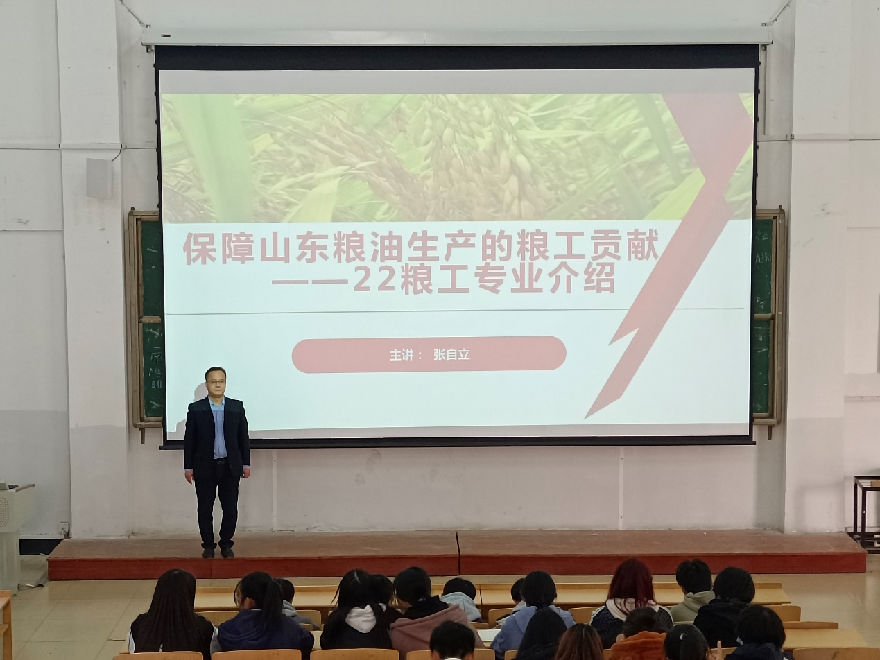 专业介绍以第42个世界粮食日“保障粮食供给端牢中国饭碗”为起点,从我国粮食加工行业发展历程入手,指出当前我国面临的粮食行业人才培养战略和高层次技术技能人才更新换代及急缺等问题,详细介绍了党和国家为全面加强粮食安全所采取的一系列政策措施,阐明粮食工程技术与管理专业对于国家粮食安全的重要意义。随后梳理了专业的历史发展脉络,介绍专业设置、学科建设、人才培养体系、科研平台情况以及人才培养质量等方面情况,帮助同学们对专业情况和特点有了更为深入的了解把握。列举了学院近几年在专业建设、学科建设、班主任工作、学风建设、考研及就业工作所取得的优异成绩,勉励同学们要志存高远、脚踏实地、不负韶华、成才报国,争做粮食行业建设的积极践行者,努力成为德智体美劳全面发展的社会主义事业建设者和接班人。