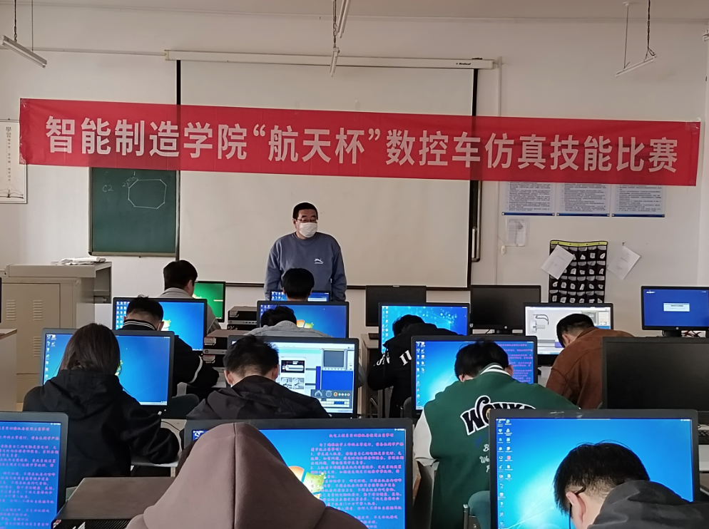 本次比赛分预赛和决赛两个环节,学院相关专业共计61名同学参加了选拔,经过预赛角逐,20名同学进入决赛。决赛采用数控仿真软件,参赛选手需要根据赛场提供的零件图进行手工编程、机床仿真加工、零件检验等。比赛中参赛选手沉着应战,有条不紊地进行编程和仿真,体现了学院学生认真细心、积极向上的精神风貌。