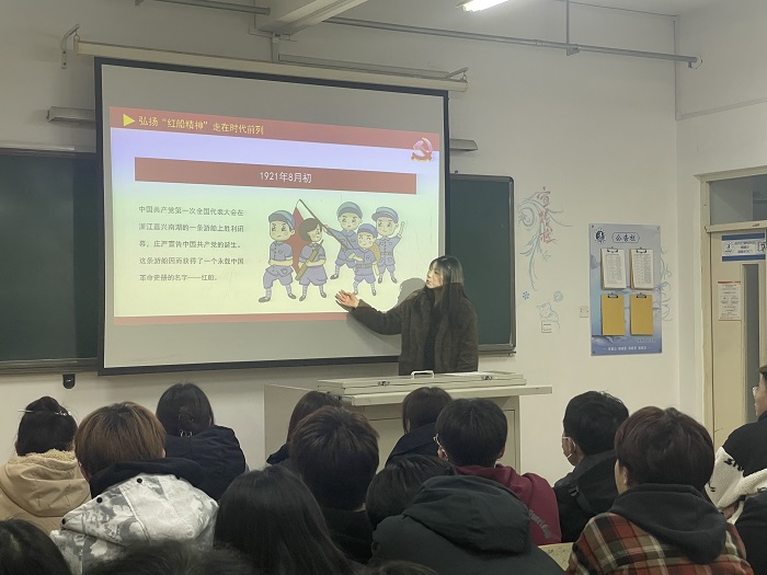 本站讯 青春心向党,建功新时代。为持续深入学习宣传贯彻党的二十大精神,近日,信息工程学院二十大精神宣讲团利用晚自习时间,面向22级全体同学,开展“传承红色基因,传播时代强音”党的二十大精神宣讲活动。