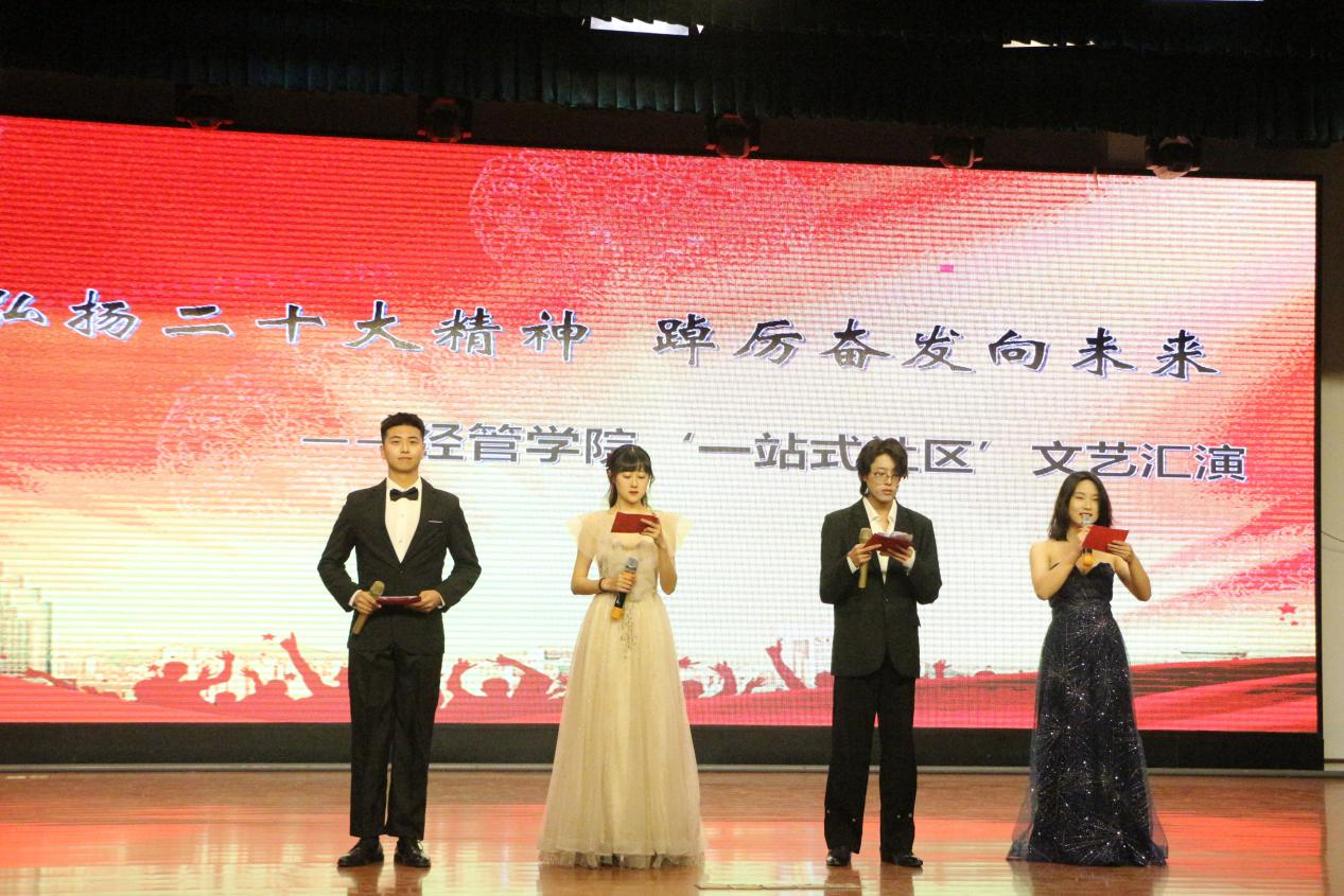 本站讯 文化凝聚精神,艺术彰显魅力。近日,经济管理学院举办了“弘扬二十大精神,踔历奋发向未来”的“一站式社区”文艺汇演活动。
