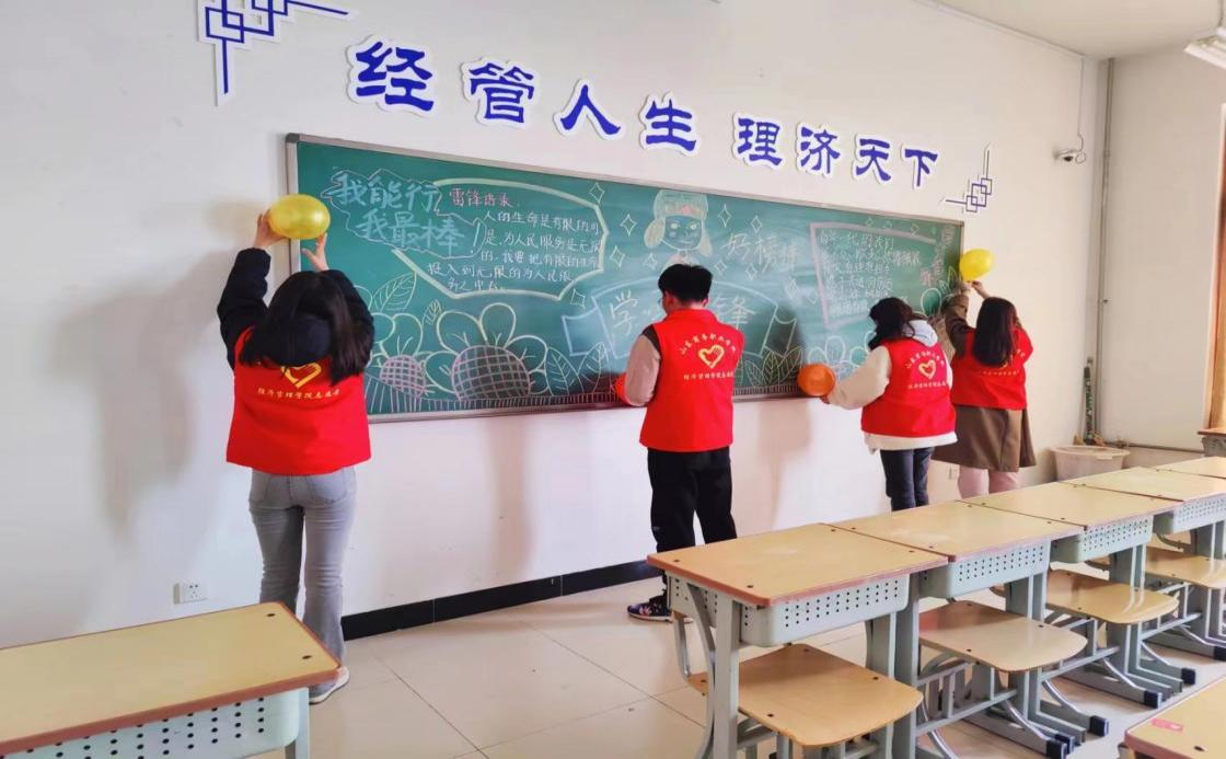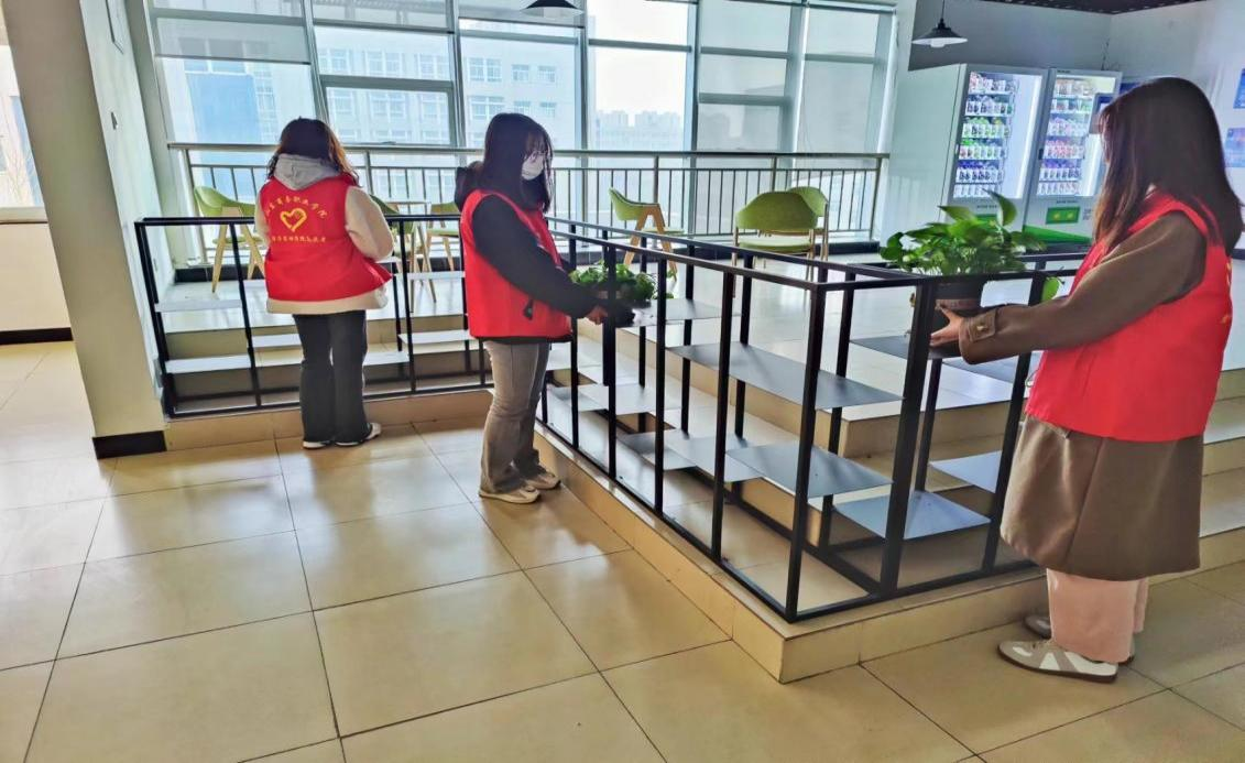 活动期间,志愿者们三人结伴、五人一群互相帮助,团结协作,充分体现不怕苦,不怕累的精神。大家齐心协力在休息场所布置绿植,对教室进行彻底清扫和美化,大家不放过任何一个角落,采取“地毯式”清理,并精心布置教室黑板报。